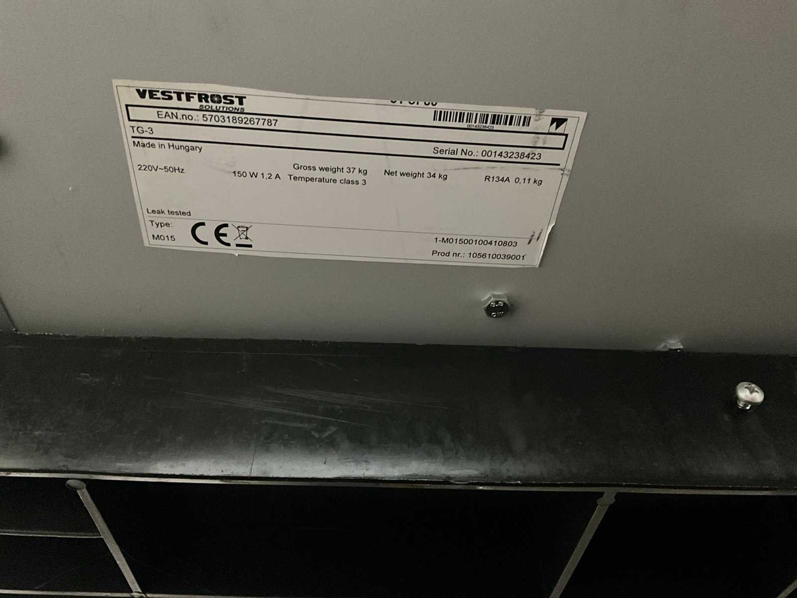 Merk: Vestfrost Type: TG-3 Serienummer: 00143238423 Totale afmeting L: 650mm Totale afmeting Breedte: 660mm Totale afmeting Hoogte: 480mm