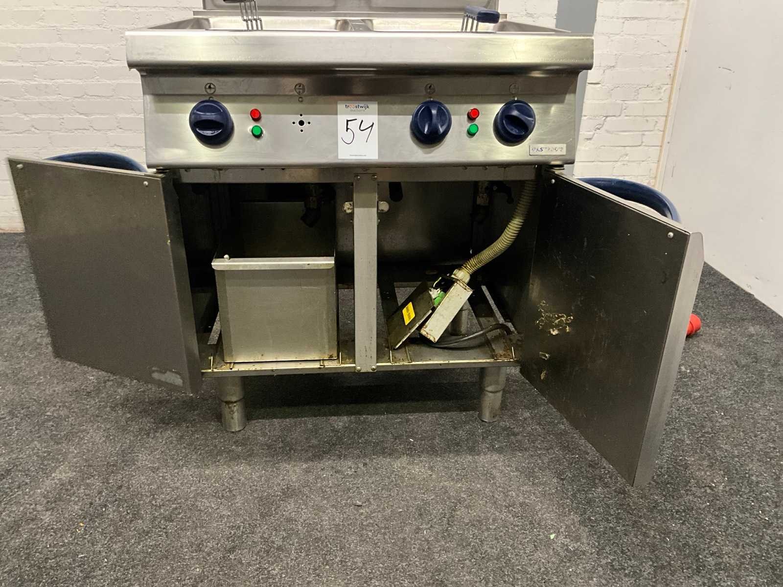 Merk: Gastrodis Rvs: true Elektrisch: true Dubbel: true Thermostaat: true Aftapkraan: true Aansluiting: 400V Totale afmeting lxbxh: 700x800x900mm