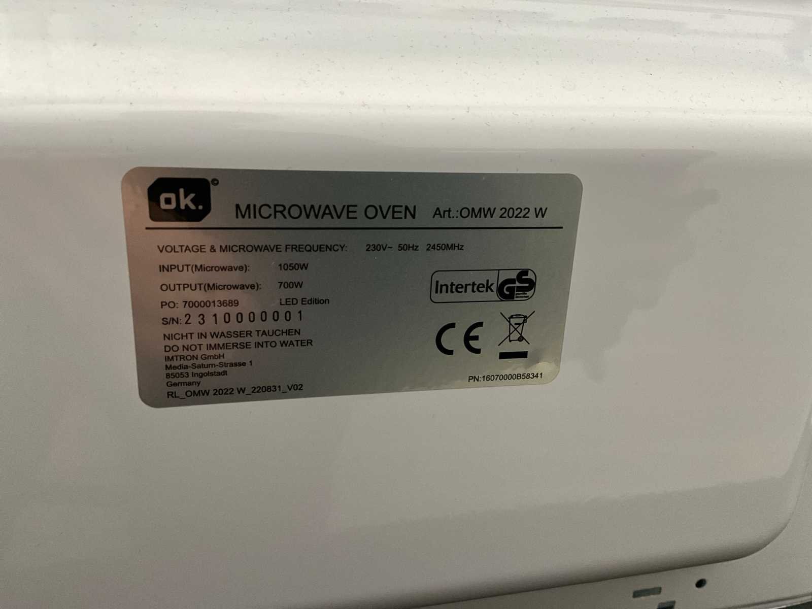 Merk: Ok. Type: OMW 2022 W Bouwjaar: 2022 Totale afmeting L: 33cm Totale afmeting Breedte: 43cm Totale afmeting Hoogte: 26cm Serienummer: 2310000001 Aansluiting: 230V