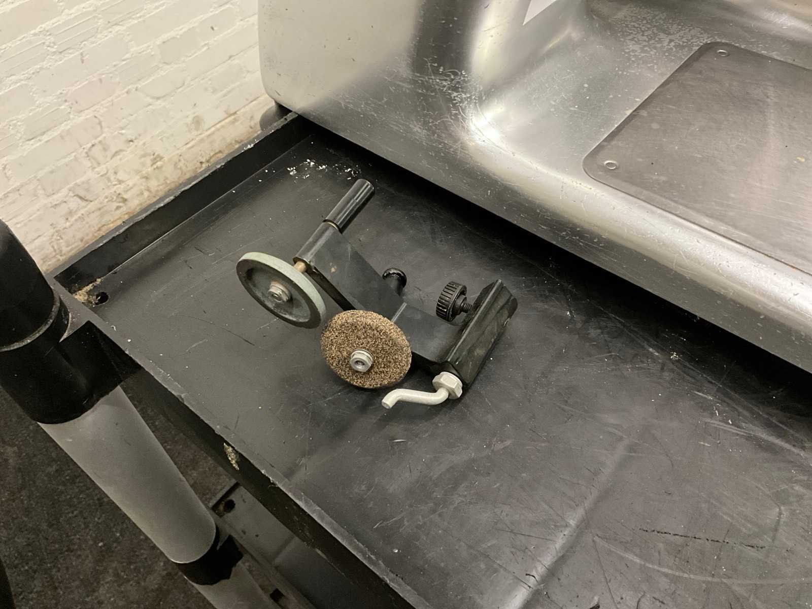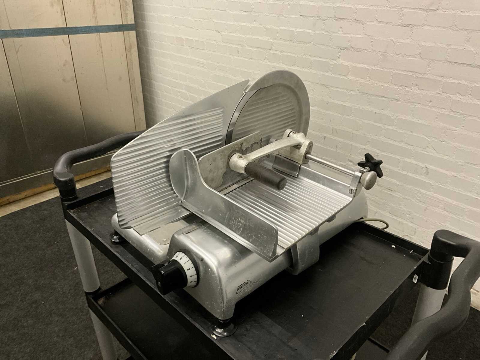 Merk: Bizerba Messlijper: true Max. snijdikte: 14mm Aansluiting: 230V Totale afmeting L: 550mm Totale afmeting Breedte: 450mm Totale afmeting Hoogte: 350mm
