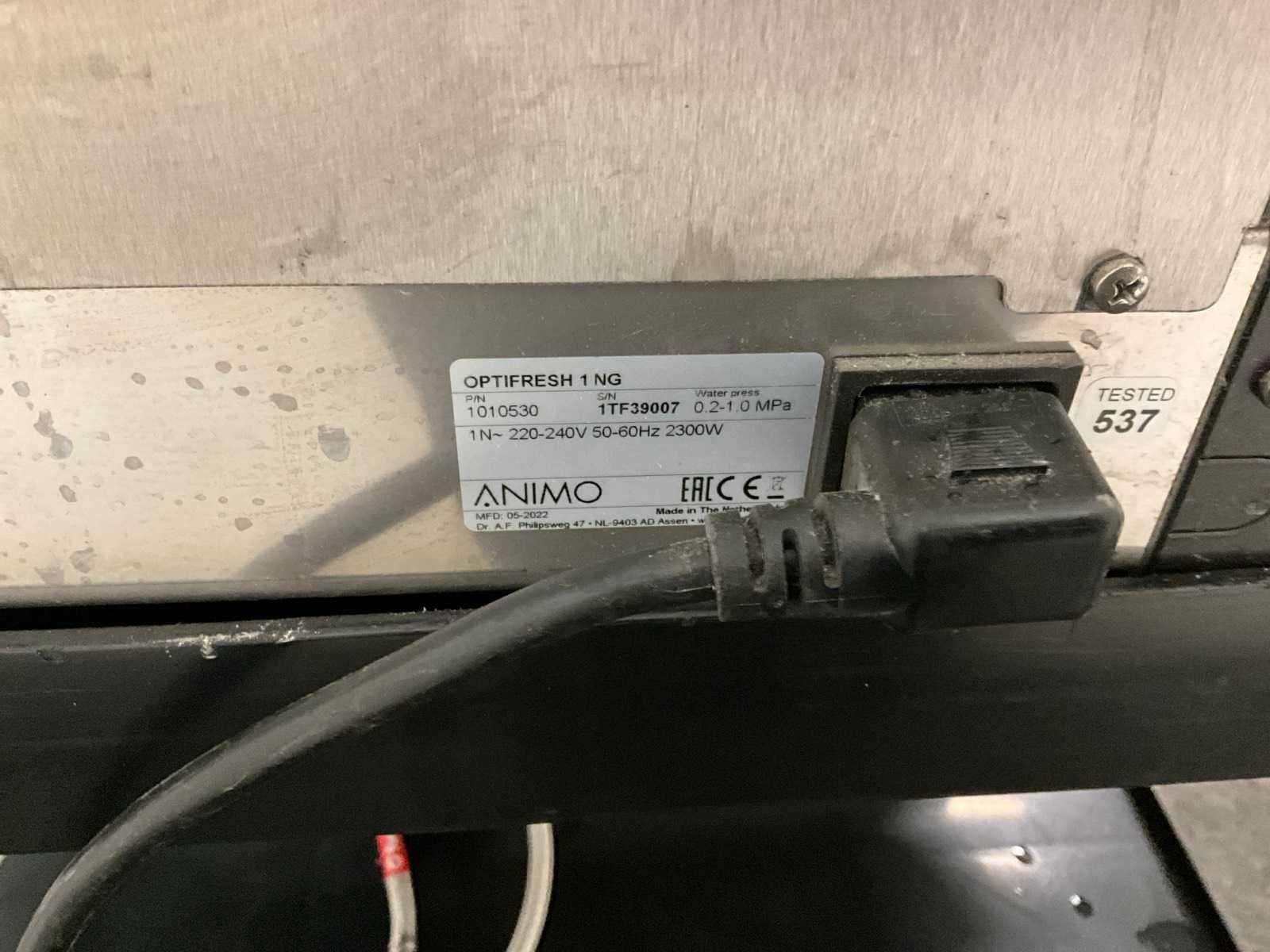Voorzien van waterontharder Merk: Animo Type: Optifresh 1 NG Aansluiting: 230V Serienummer: 1TF39007 Digitale uitlezing: true Rvs: true Totale afmeting L: 440mm Totale afmeting Breedte: 400mm Totale afmeting Hoogte: 770mm