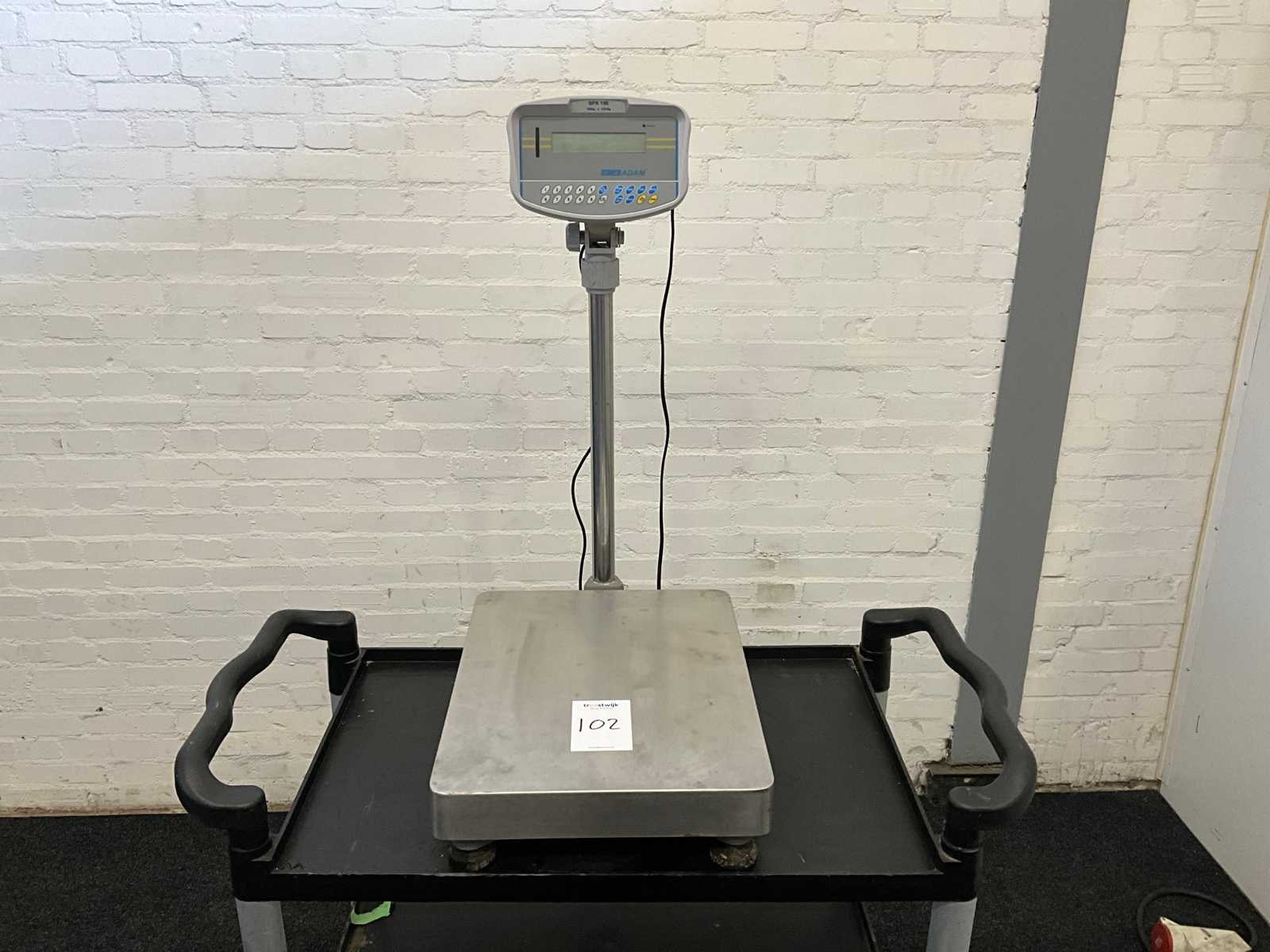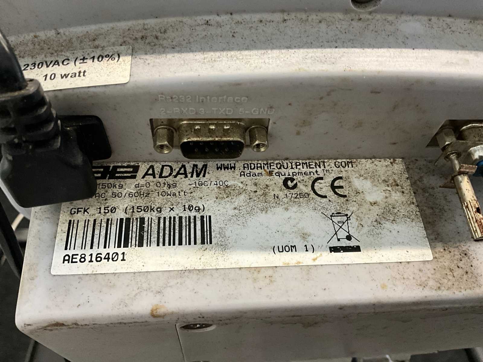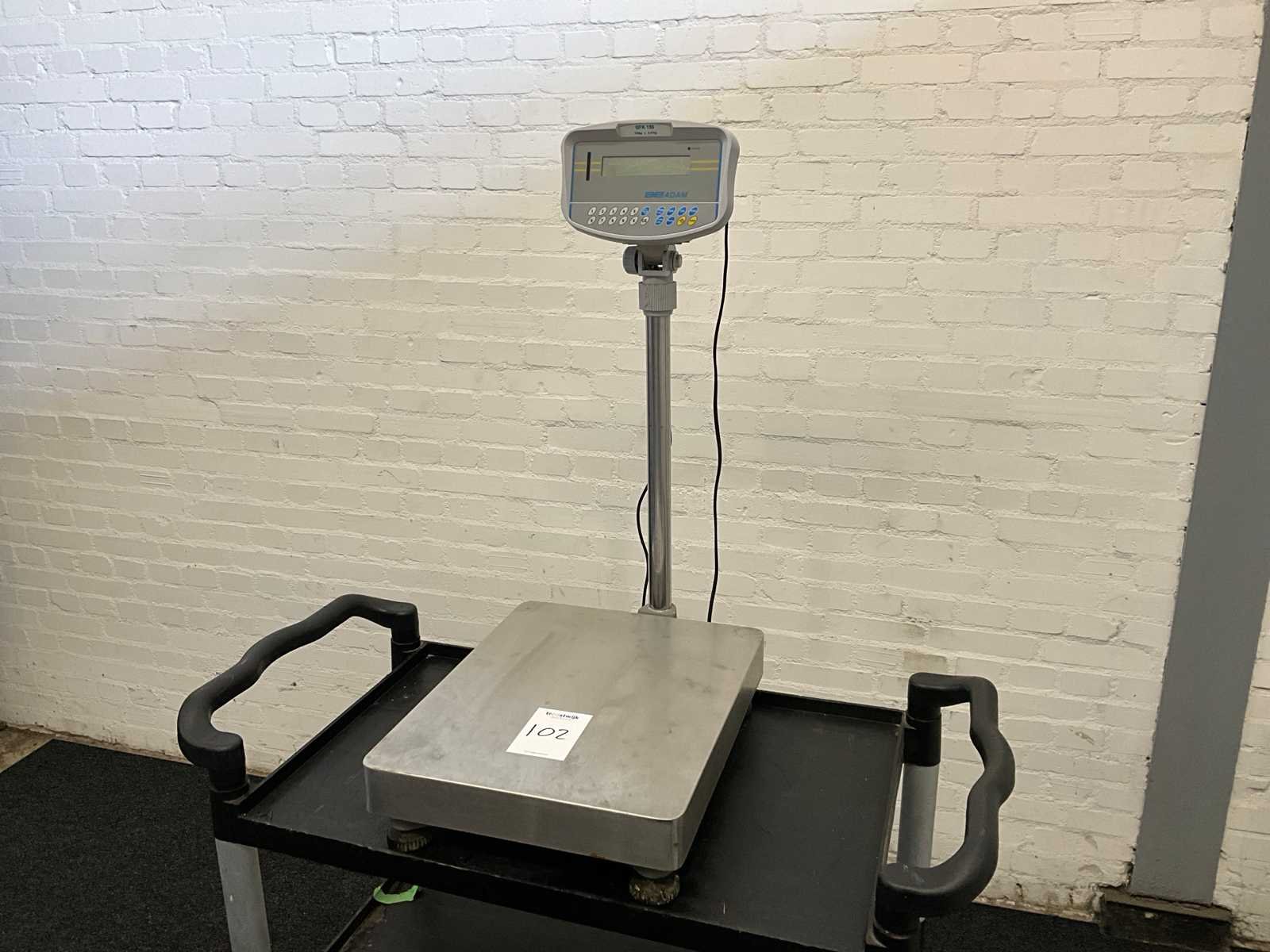 Merk: Adam Type: GFK 150 Serienummer: AE816401 Weegbereik min.: 10g Weegbereik max: 150000g Plateau afm. l: 500mm Plateau afm. b: 400mm Digitale uitlezing: true Aansluiting: 230V Totale afmeting L: 630mm Totale afmeting Breedte: 400mm Totale afmeting Hoogte: 850mm