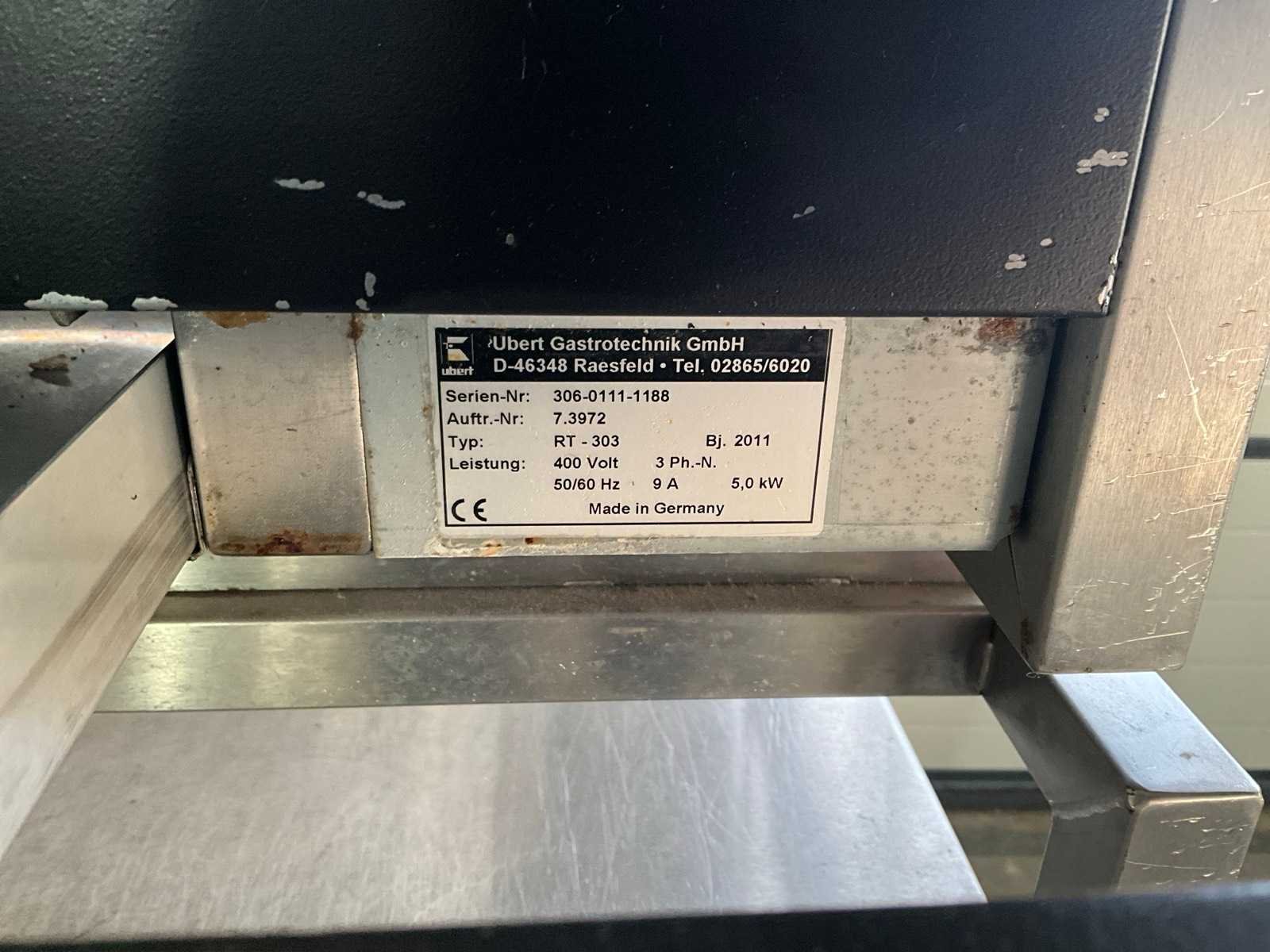 Merk: Ubert Type: RT - 303 Bouwjaar: 2011 Serienummer: 306-0111-1188 Elektrisch verwarmd: true Aansluiting: 400V Totale afmeting L: 600mm Totale afmeting Breedte: 850mm Totale afmeting Hoogte: 1970mm