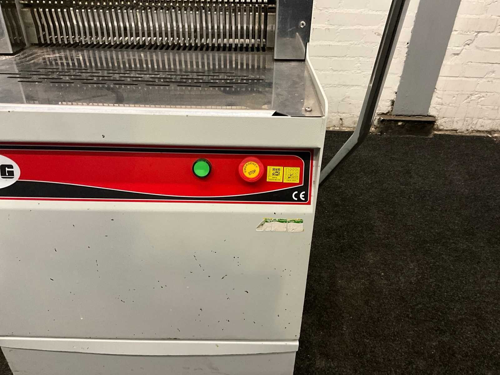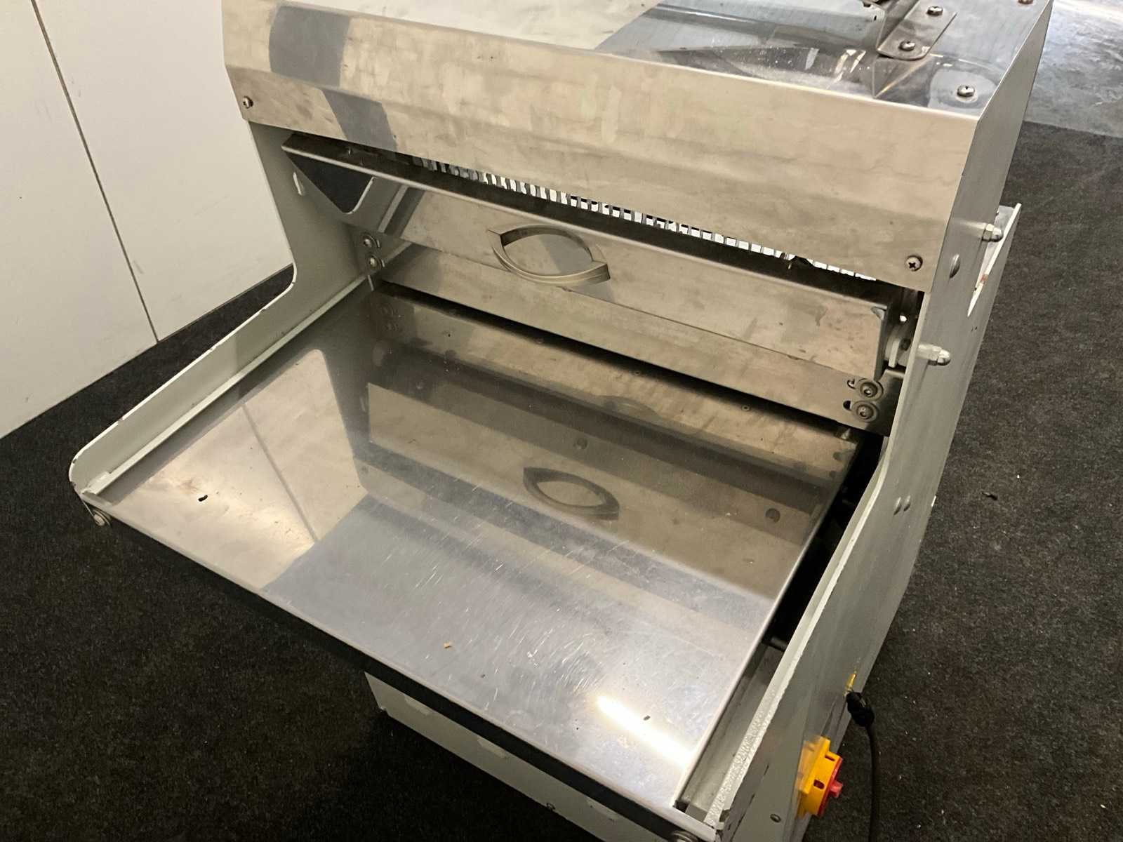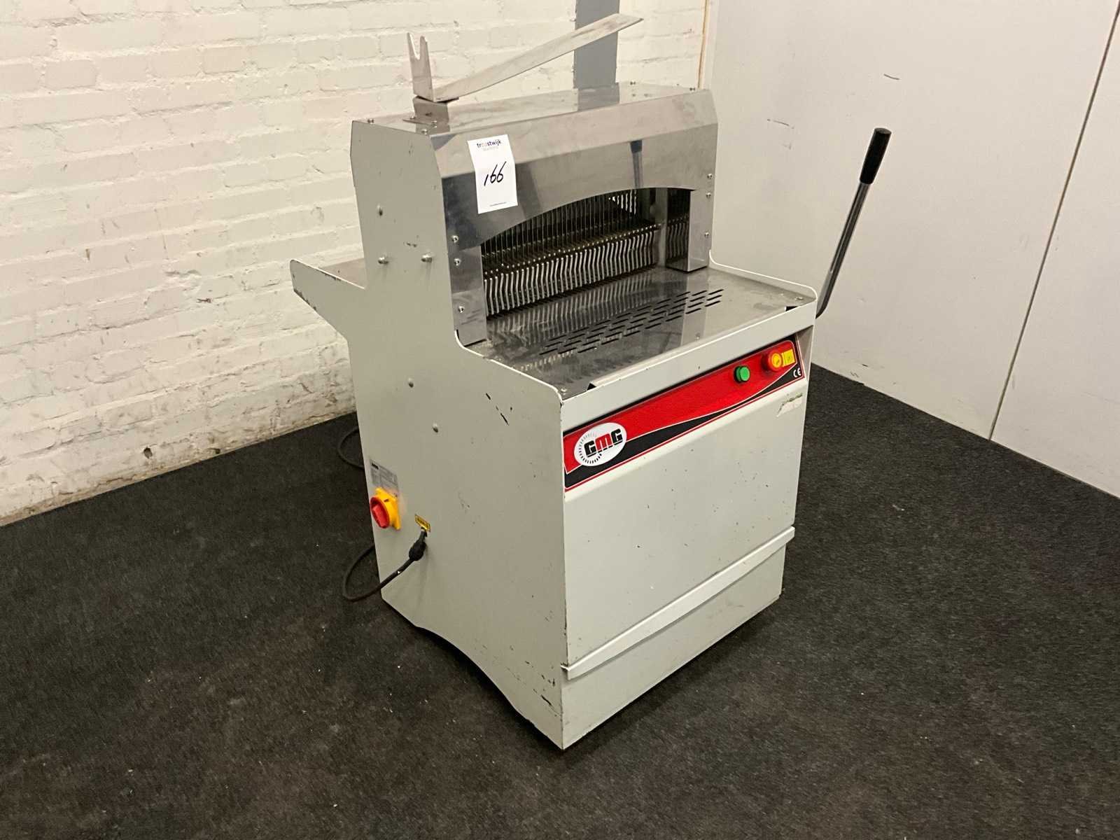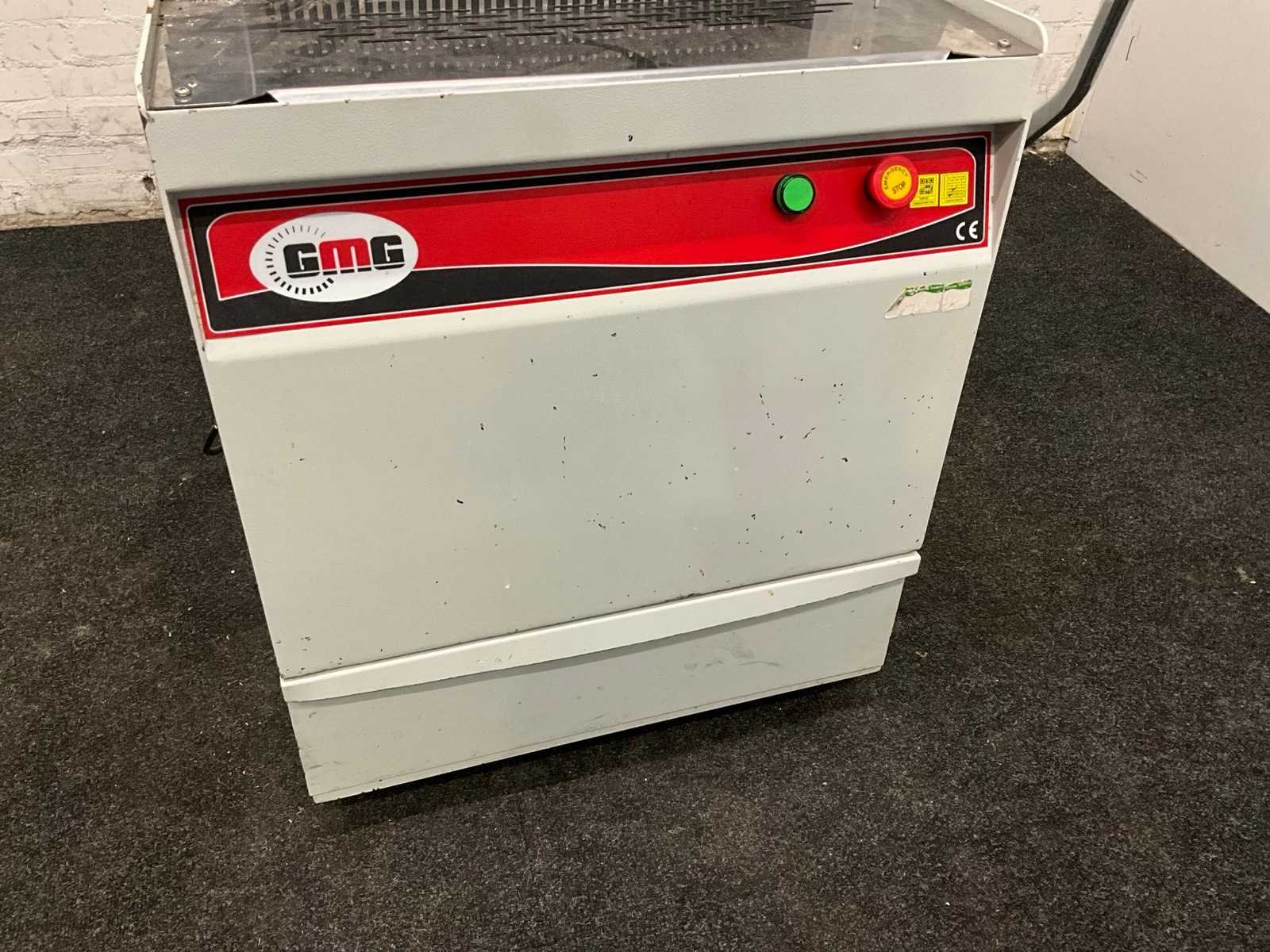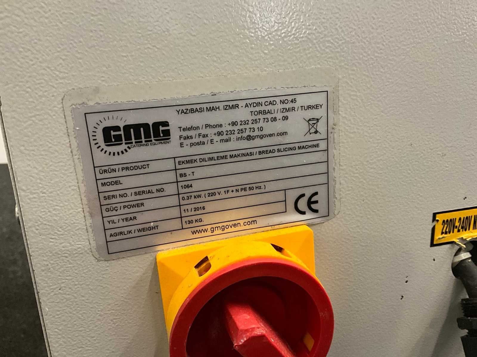 Merk: GMG Type: BS-T Bouwjaar: 2016 Serienummer: 1064 Snijdikte bereik: 13mm Aansluiting: 230V Totale afmeting L: 800mm Totale afmeting Breedte: 600mm Totale afmeting Hoogte: 1020mm