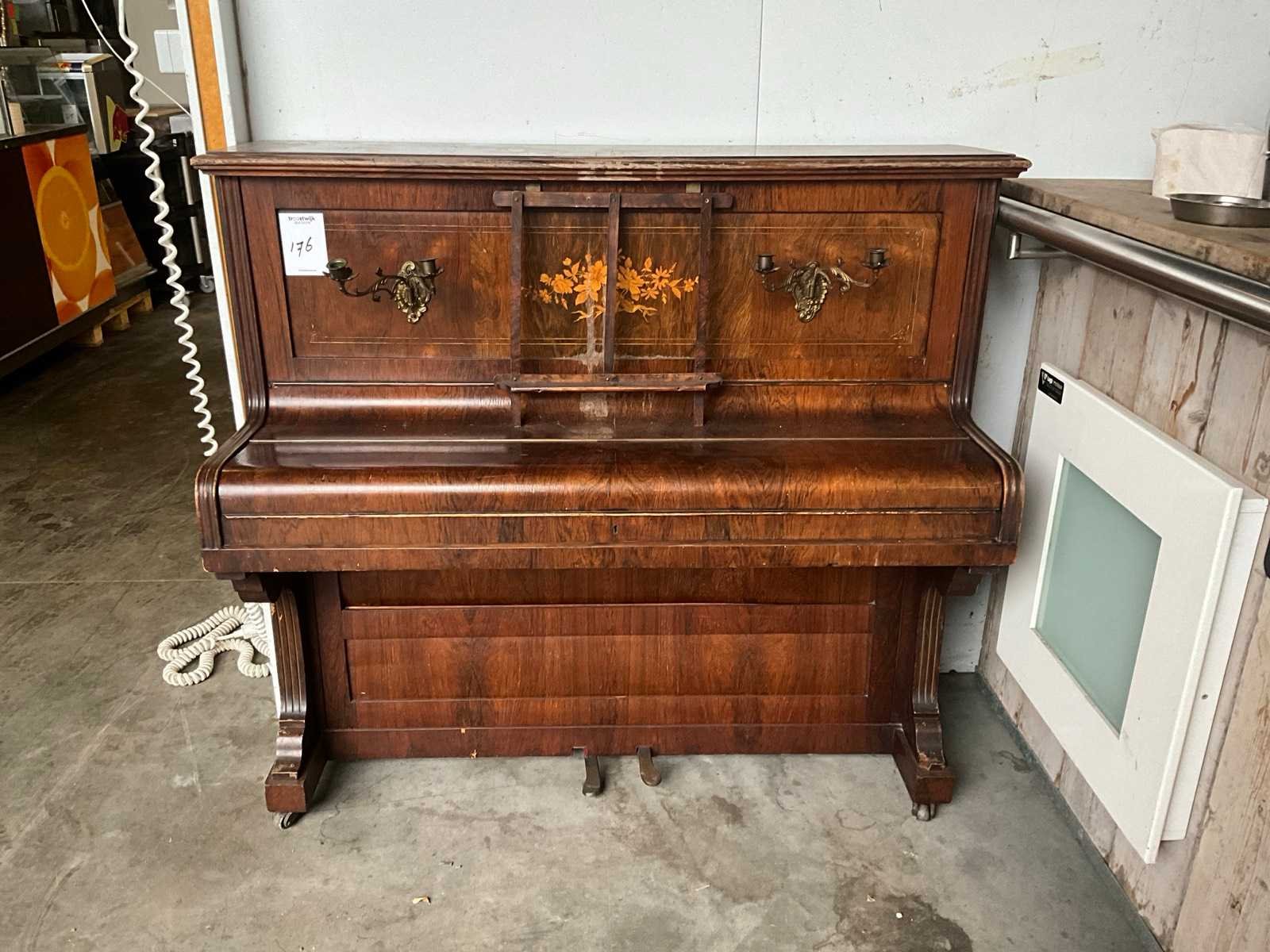 Merk: C.Curtis Kleur: Bruin Lengte: 140cm Breedte: 62cm Hoogte: 125cm Aantal toetsen: 85
