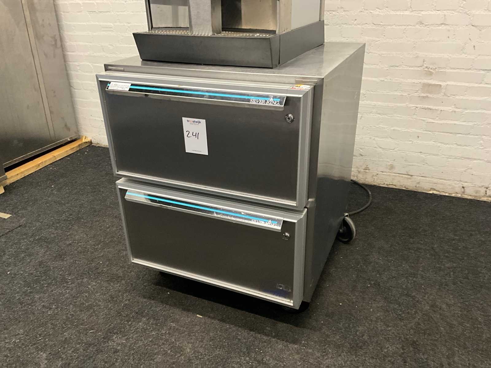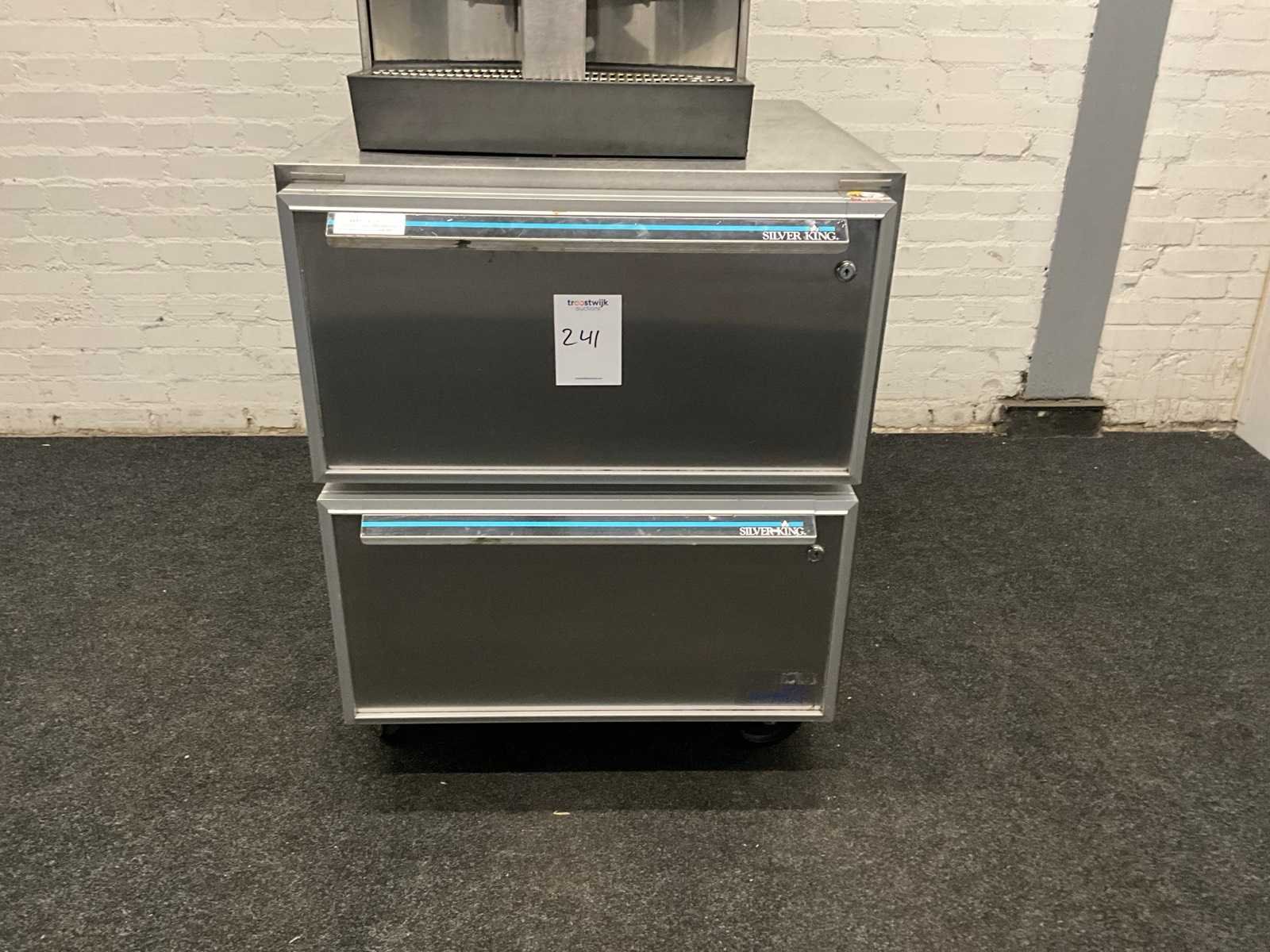 Merk: Silver king Type: SKR27BD Totale afmeting L: 77cm Totale afmeting Breedte: 69cm Totale afmeting Hoogte: 87cm Materiaal: Rvs Ingebouwde koelcompressor: true Serienummer: SAHG37757A Rvs: true Aansluiting: 230V Mobiel: true Aantal laden: 2pcs