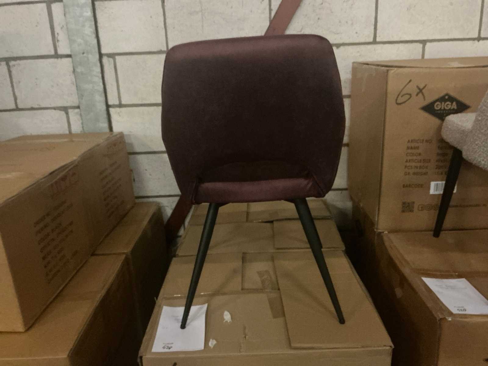 Merk: Brinker Model: Olso Dining Chair Product type: 10002221 Kleur: Winered Zithoogte: 45cm Materiaal: Gestoffeerd
