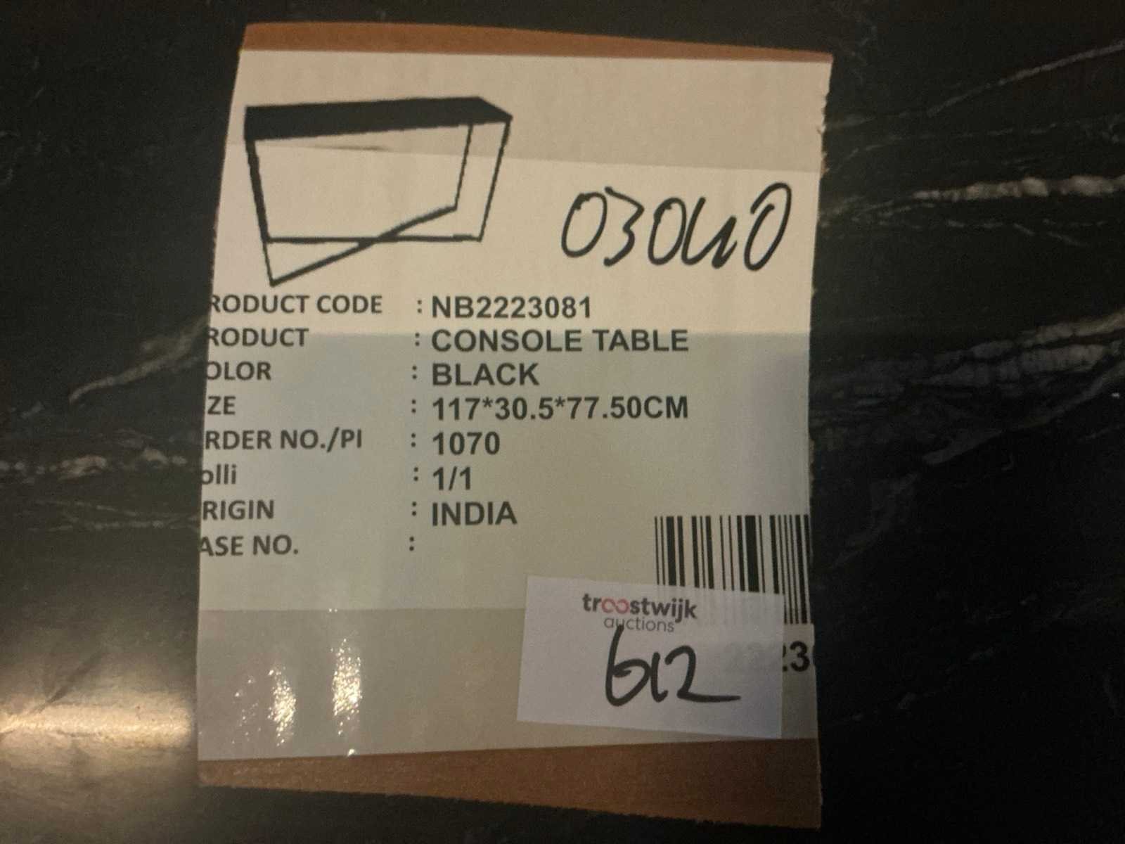 Materiaal: Stalen onderstel met natuursteen blad Lengte: 117cm Breedte: 30.5cm Hoogte: 77.5cm