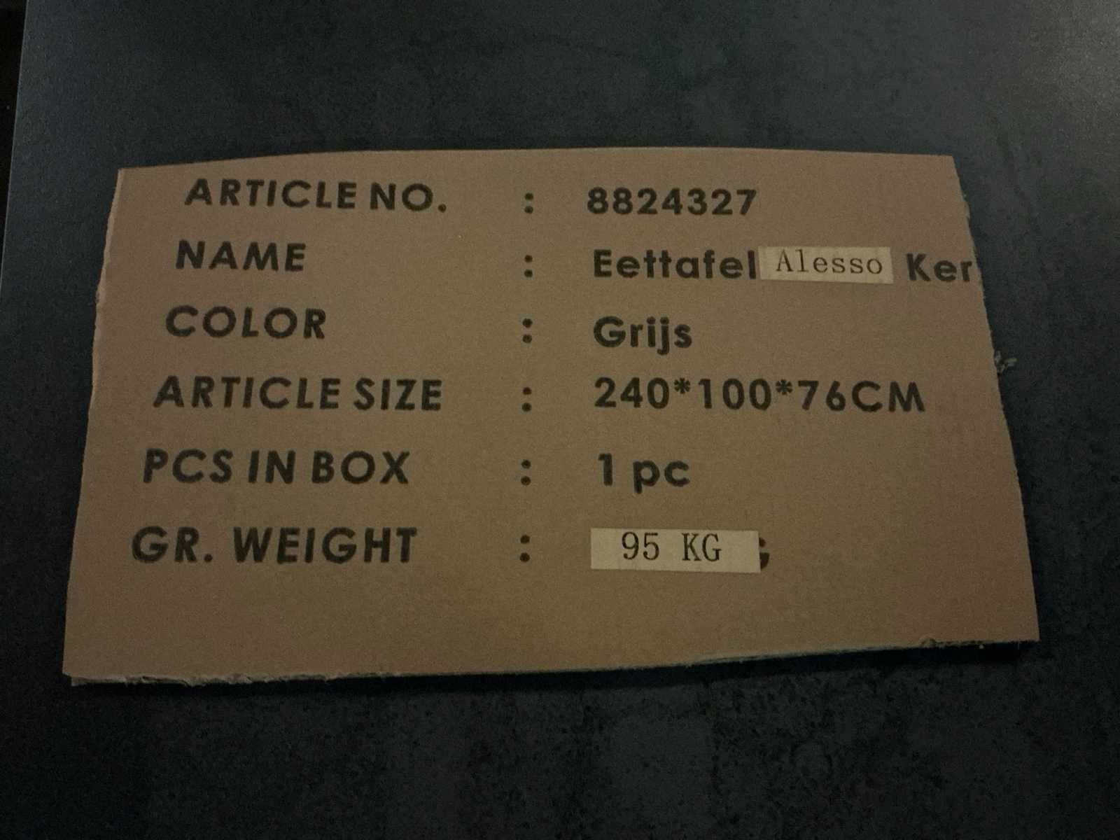 Model: Alesso Kleur: Grijs Lengte: 240cm Breedte: 100cm Hoogte: 76cm Materiaal: Keramiek en metaal
