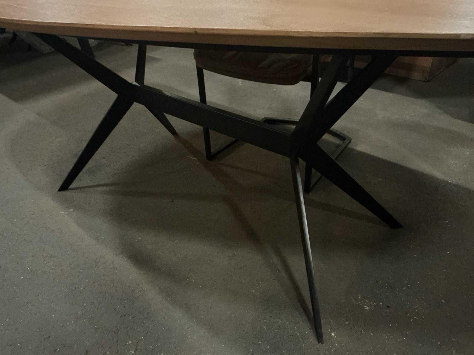Model: Kiezel Vorm: Kiezel Zitplaatsen: 4 Kleur: Bruin Lengte: 200cm Breedte: 100cm Hoogte: 78cm Materiaal: Mango hout blad en metalen poot