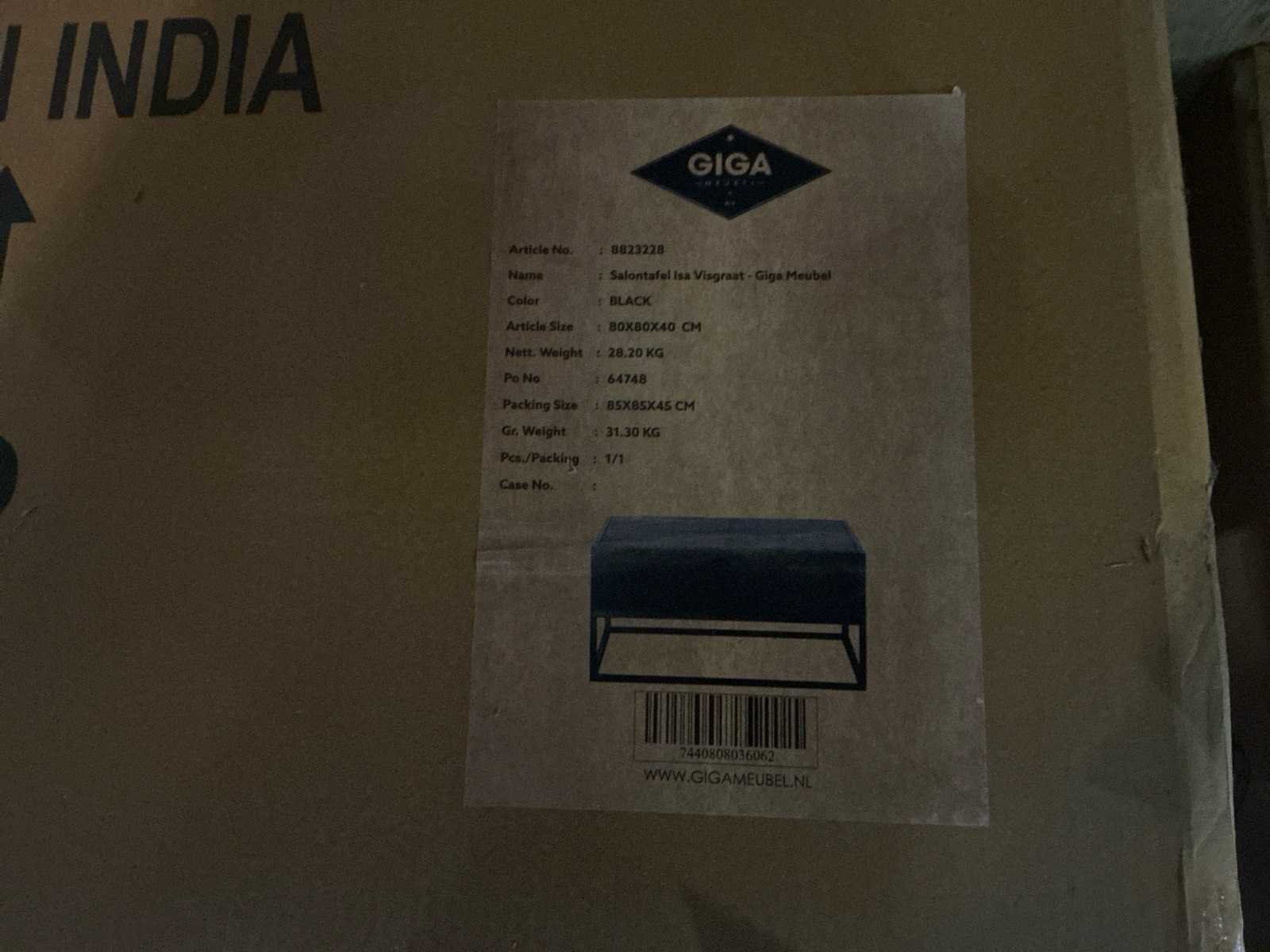 Merk: Gigameubel Model: Isa visgraat Vorm: Vierkant Kleur: Zwart Breedte: 80cm Hoogte: 40cm Materiaal: Hout en metaal