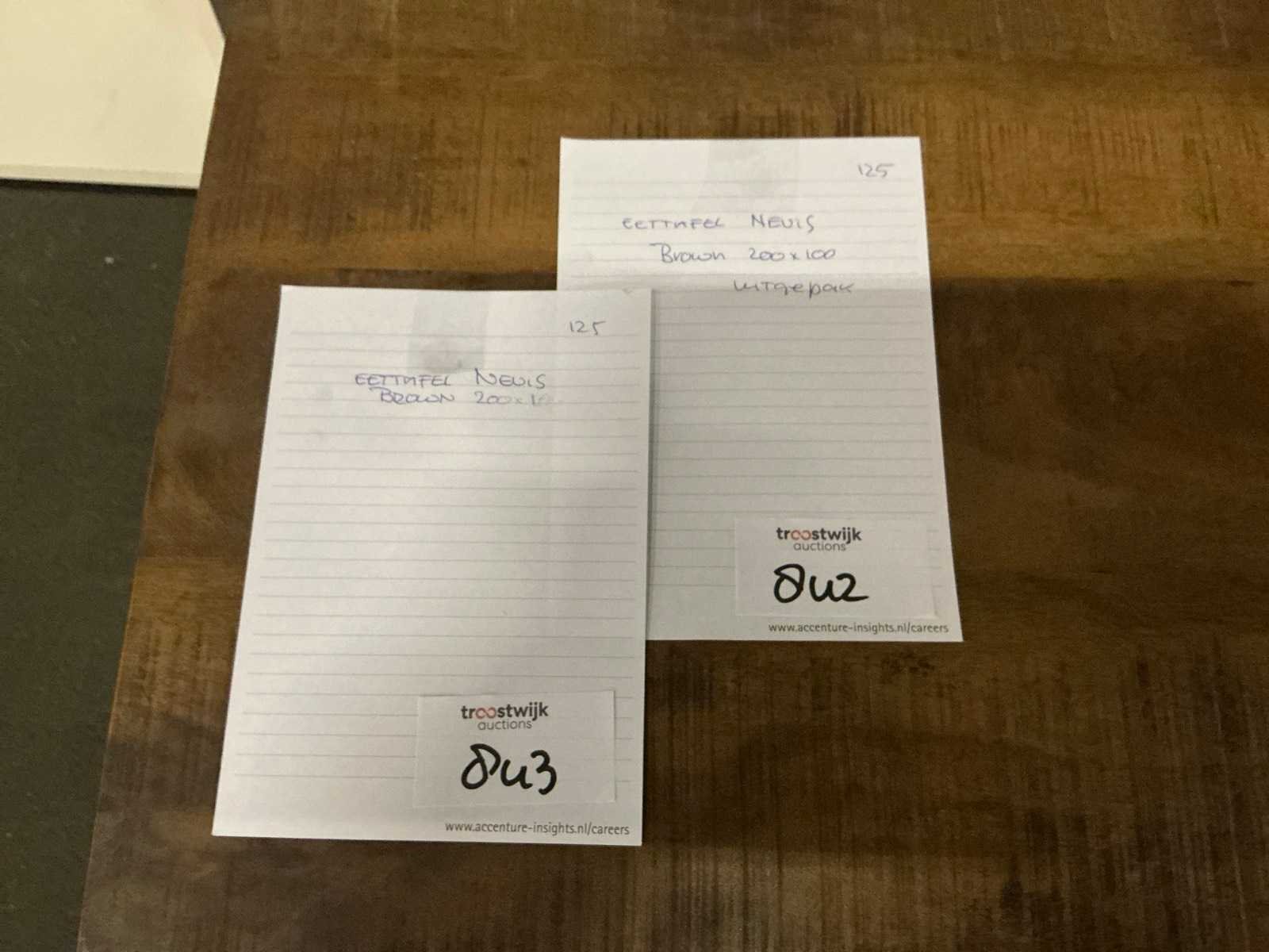 Merk: Brinker Model: Nevis Vorm: Rechthoek Zitplaatsen: 6 Kleur: Bruin Lengte: 200cm Breedte: 100cm Materiaal: Hout en metaal