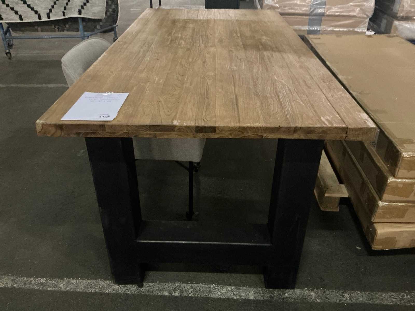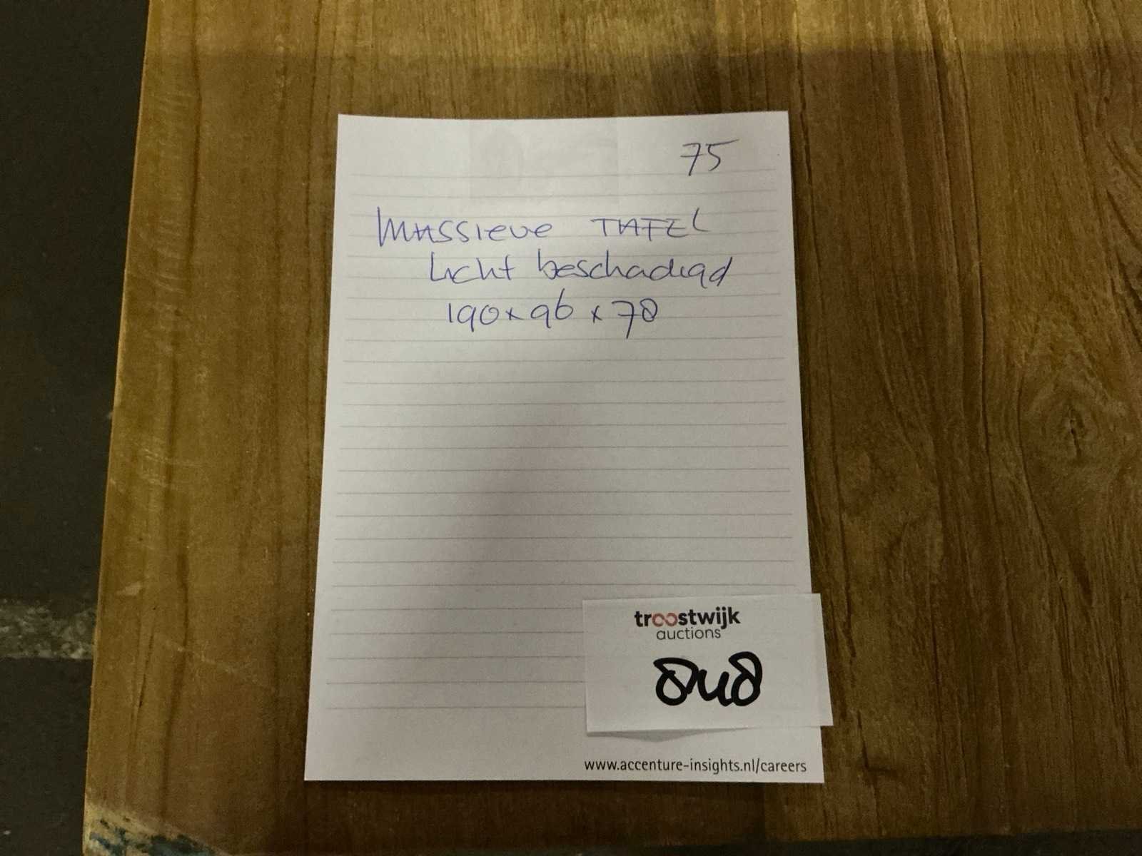 Licht beschadigd Model: Massief Vorm: Recht Zitplaatsen: 4 Kleur: Bruin Lengte: 190cm Breedte: 96cm Hoogte: 78cm Materiaal: Hout en metaal