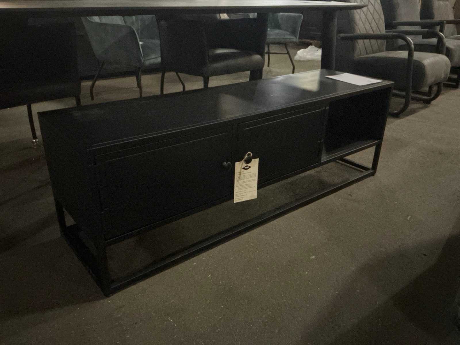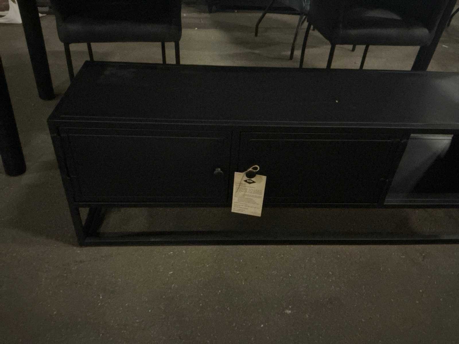 2 deurs, 1 open vak Merk: Gigameubel Model: Urban Kleur: Zwart Lengte: 140cm Breedte: 40cm Hoogte: 45cm Materiaal: Metaal