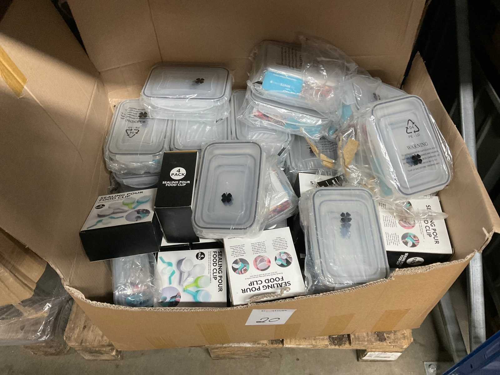 Bestaande uit: foodclips, Tupperware dozen, spiceracks. Verpakt over 3 dozen.