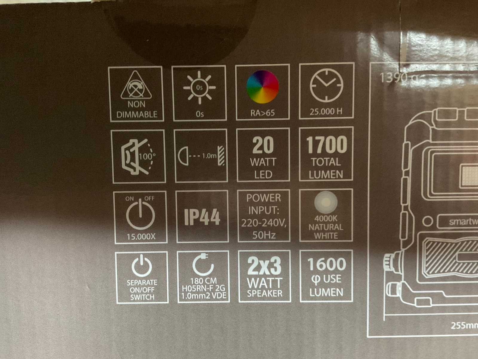 Verpakt in 9 dozen a’ 5 stuks Merk: Smartwares Type: FCL-76012 LED: true Vermogen: 20W Aansluiting: 230V Totale afmeting Breedte: 255mm Totale afmeting Hoogte: 290mm