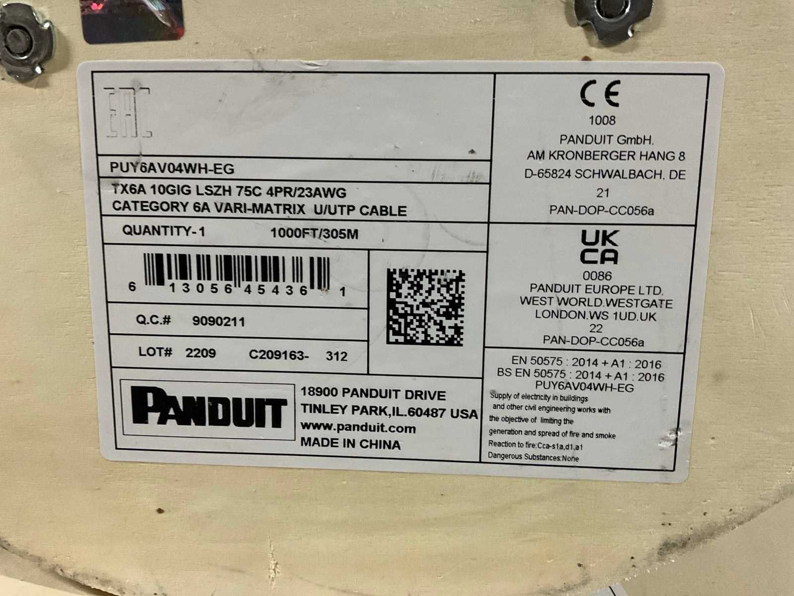 Categorie: 6A, vari-matrix. Deels aangebroken rollen. Merk: Panduit Model: PUY6AV04WH-EG