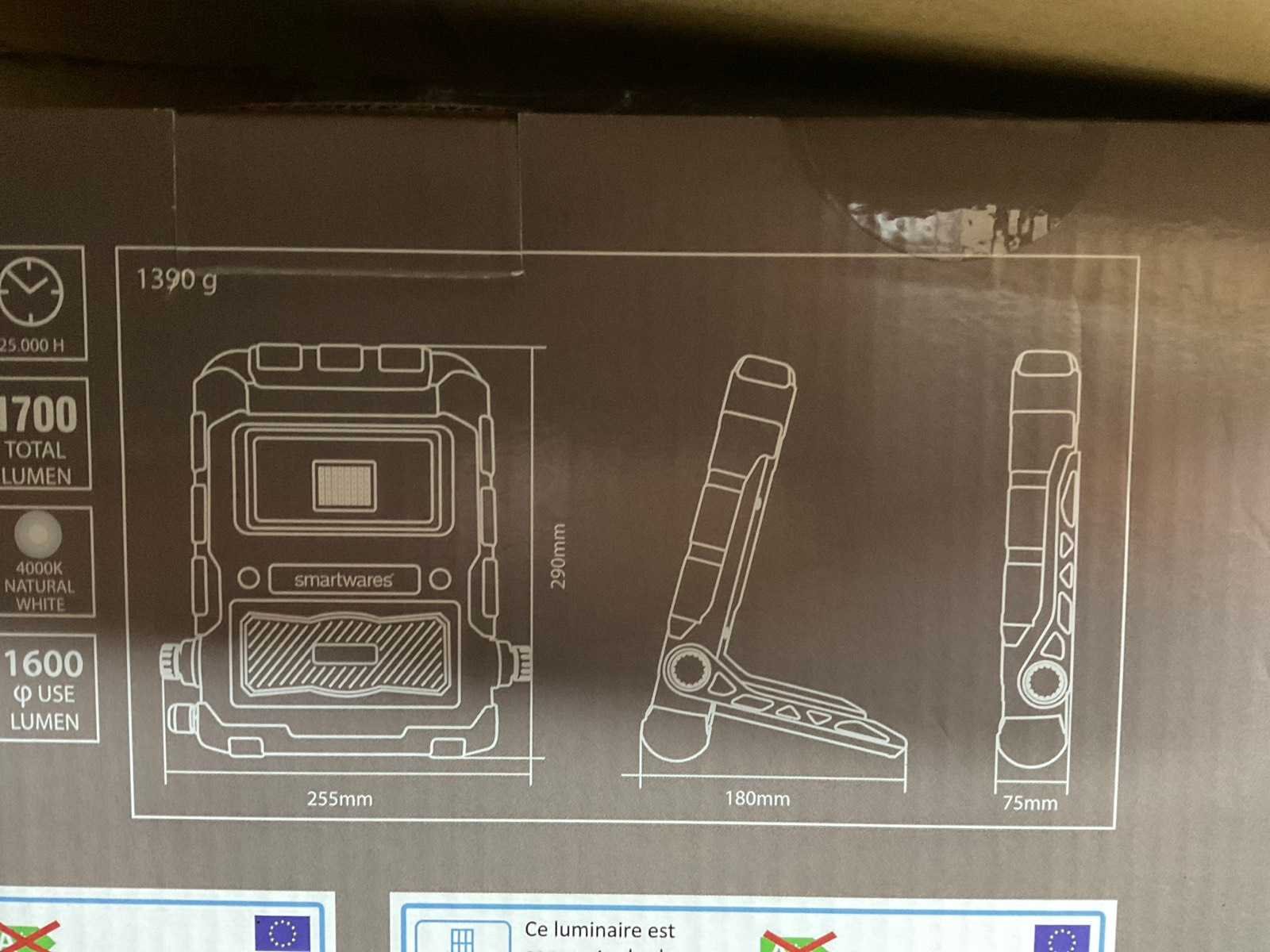 Verpakt in 8 dozen a’ 5 stuks Merk: Smartwares Type: FCL-76012 LED: true Vermogen: 20W Aansluiting: 230V Totale afmeting Breedte: 255mm Totale afmeting Hoogte: 290mm