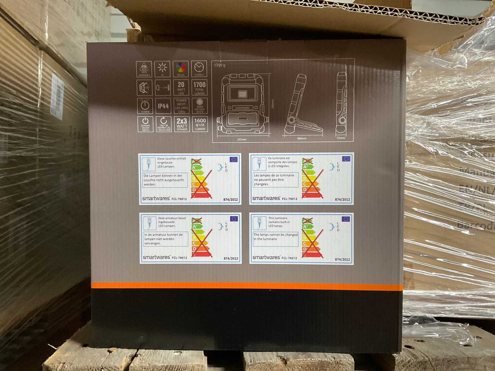 Verpakt in 9 dozen a’ 5 stuks Merk: Smartwares Type: FCL-76012 LED: true Vermogen: 20W Aansluiting: 230V Totale afmeting Breedte: 255mm Totale afmeting Hoogte: 290mm