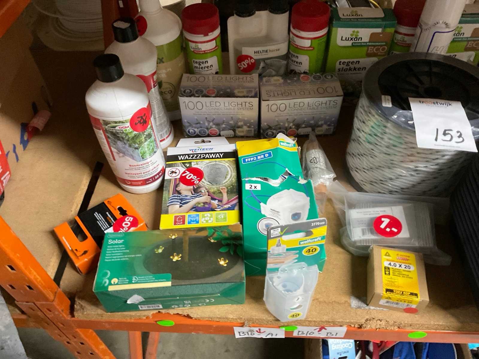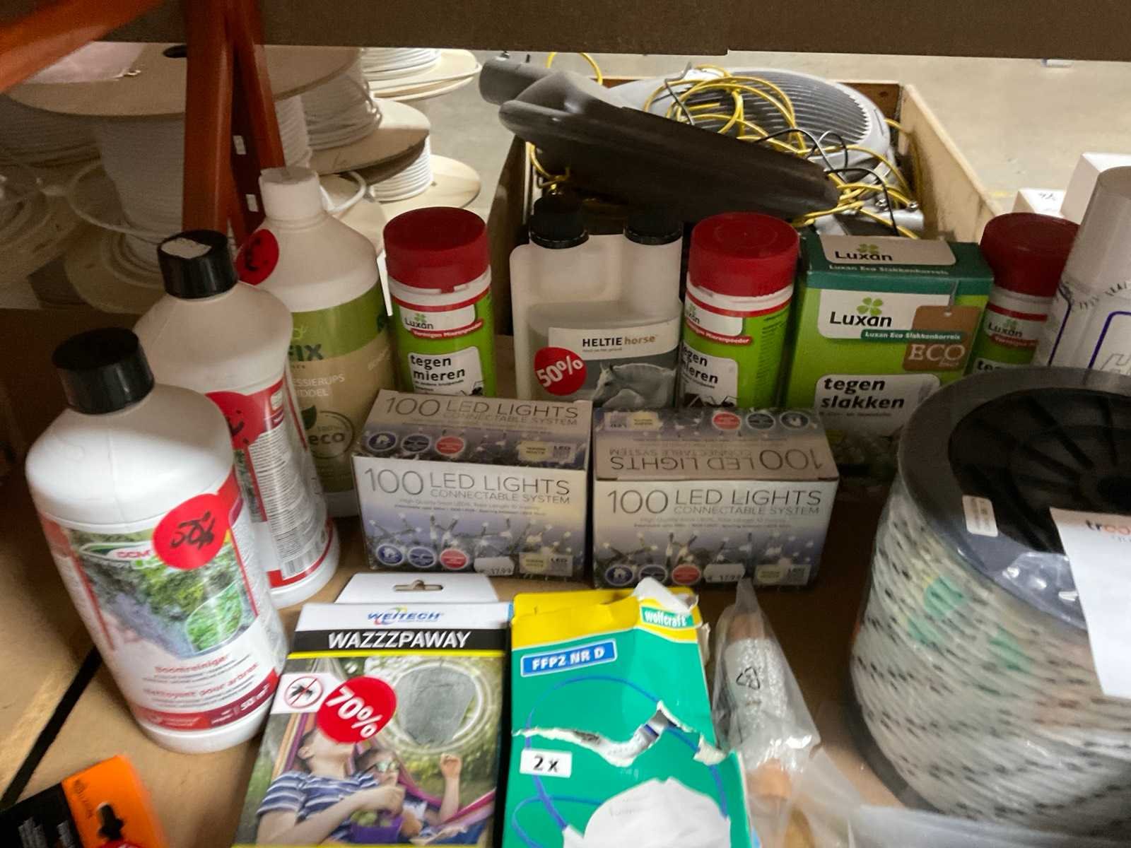 1e: Insektenverdelging 2e: Touw 3e: Kunststof bakken 4e: Verlichting