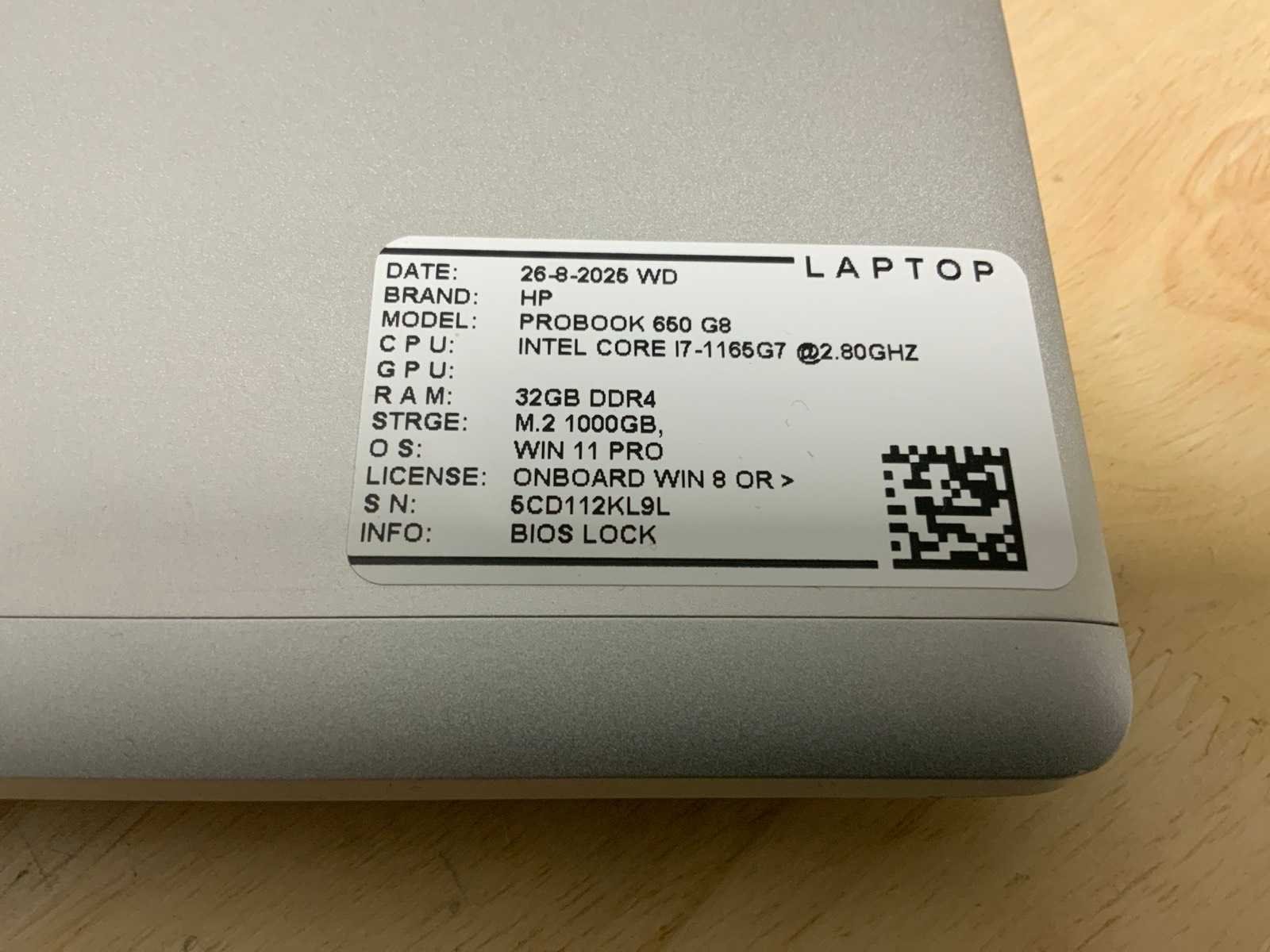 Merk: Hp Type: ProBook 650 G8 Processor type: Intel core i7-1165G7 Processorsnelheid Ghz: 2,8 RAM Geheugen: 32GB RAM Geheugen Type: DDR4 Totale opslagcapaciteit: 1000GB Type datadrager: M.2 SSD Aantal datadragers: 1 Besturingssysteem: Windows 11 Pro Licentie: Onboard Zonder adapter: true Wifi: true Bluetooth: true Ethernet: 1 USB-Type: USB-A & USB-C USB poorten: 4 Card reader: true Koptelefoon aansluiting: true Webcam: true Toetsenbord: QWERTY HDMI: 1