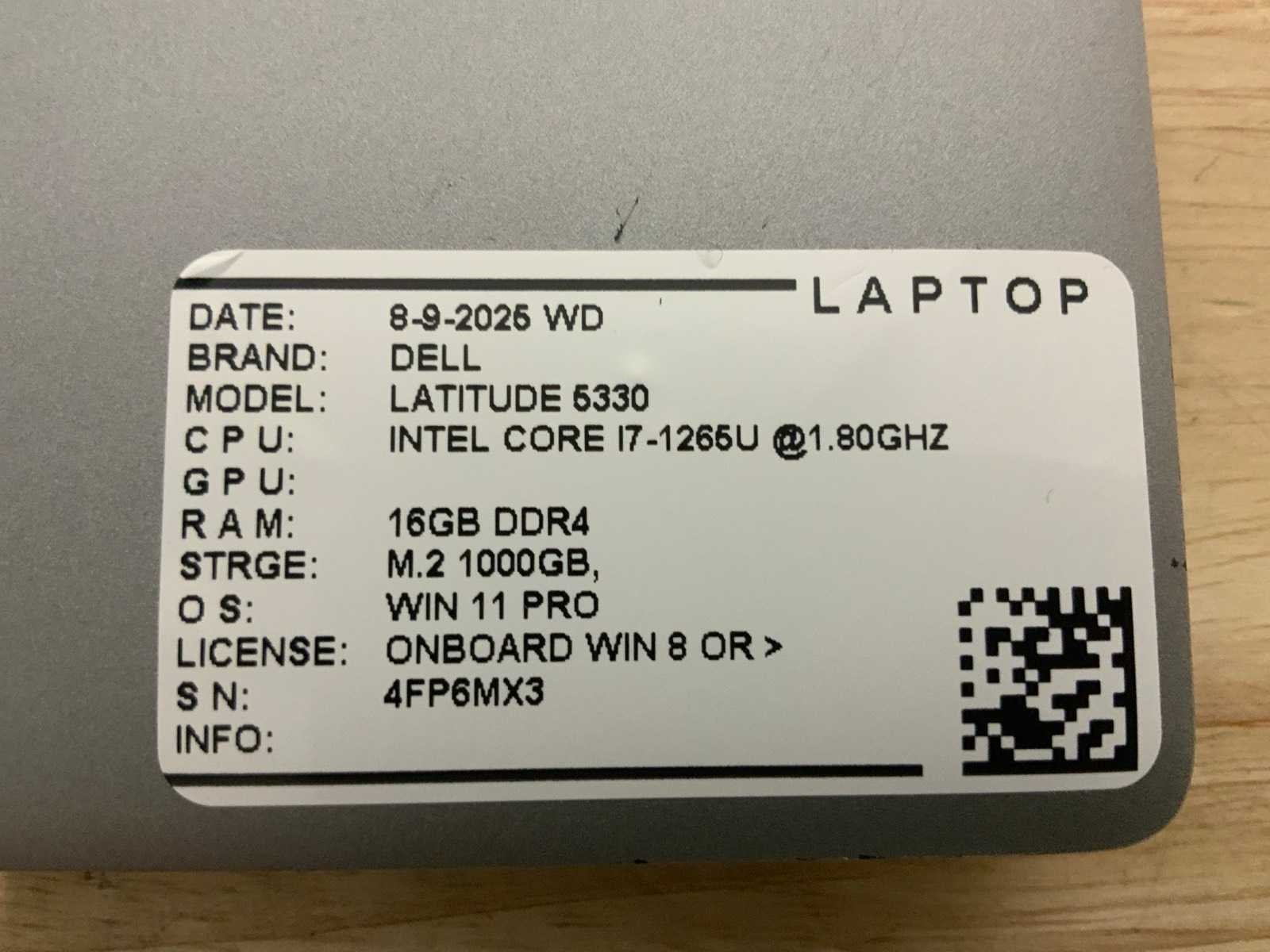 Merk: Dell Type: Latitude 5330(i7) Processor type: Intel core i7-1265U Processorsnelheid Ghz: 1,80 RAM Geheugen: 16GB RAM Geheugen Type: DDR4 Totale opslagcapaciteit: 1000GB Type datadrager: M.2 SSD Aantal datadragers: 1 Besturingssysteem: Windows 11 Pro Licentie: Onboard Zonder adapter: true Touchscreen: true Wifi: true Bluetooth: true USB-Type: USB-A & USB-C USB poorten: 4 Card reader: true Koptelefoon aansluiting: true Webcam: true Toetsenbord: QWERTY HDMI: 1