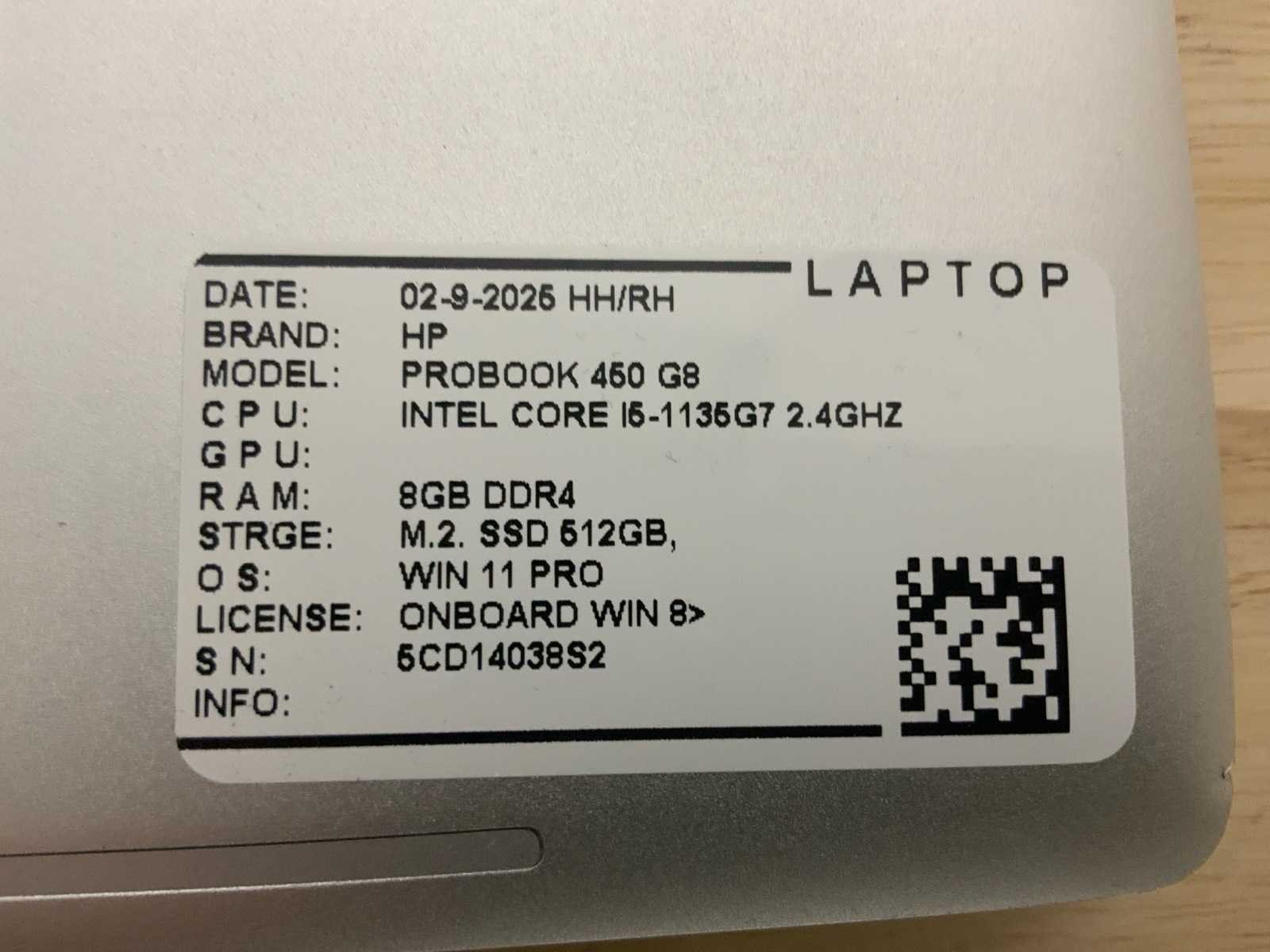 Merk: Hp Type: ProBook 450 G8 Processor type: Intel core i5-1135G7 Processorsnelheid Ghz: 2,40 RAM Geheugen: 8GB RAM Geheugen Type: DDR4 Totale opslagcapaciteit: 512GB Type datadrager: M.2 SSD Aantal datadragers: 1 Besturingssysteem: Windows 11 Pro Licentie: Onboard Zonder adapter: true Wifi: true Bluetooth: true Ethernet: 1 USB-Type: USB-A & USB-C USB poorten: 4 Card reader: true Koptelefoon aansluiting: true Webcam: true Toetsenbord: QWERTY HDMI: 1