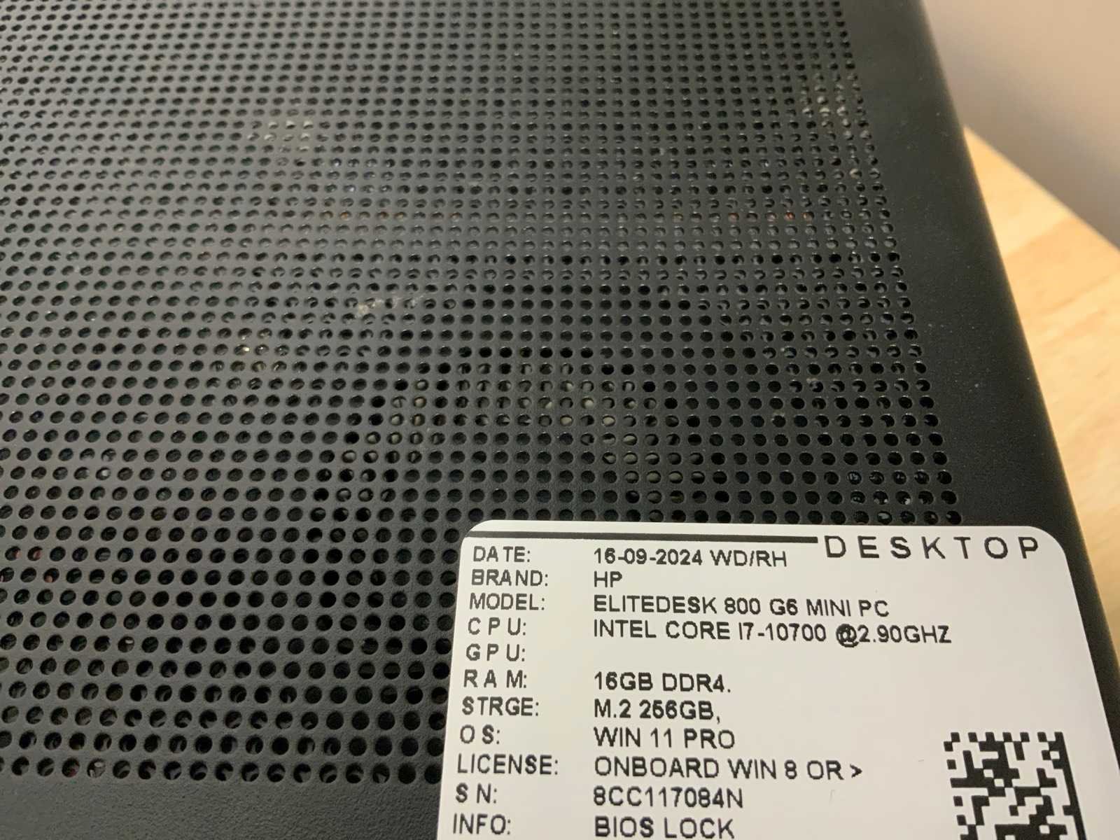 Merk: Hp Type: EliteDesk 800 G6 Mini Processor type: Intel core i7-10700 Processor snelheid: 2.9Ghz Besturingssysteem: Windows 11 Pro Type datadrager: M.2 SSD RAM Geheugen: 16GB RAM Geheugen Type: DDR4 Opslagcapaciteit: 256GB Bluetooth: true Displaypoort: 2 Wifi: true Ethernet: 1 USB poorten: 10 Zonder voedingskabel: true Zonder adapter: true