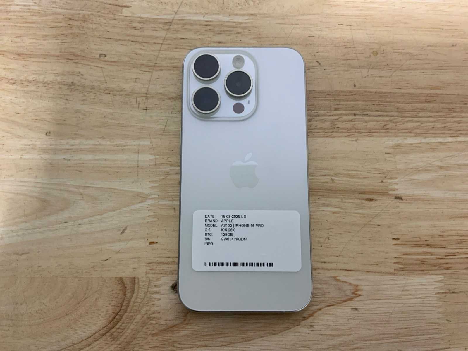 Merk: Apple Type: iPhone 15 pro A3102 Draadloos opladen: true Quick charge functie: true Wifi: true Bluetooth: true Gezichtsherkenning: true Frontcamera: true Camera: true Touchscreen: true Simlock vrij: true Opslagcapaciteit: 128GB Besturingssysteem: IOS 26 Zonder oplader: true Refurbished: true