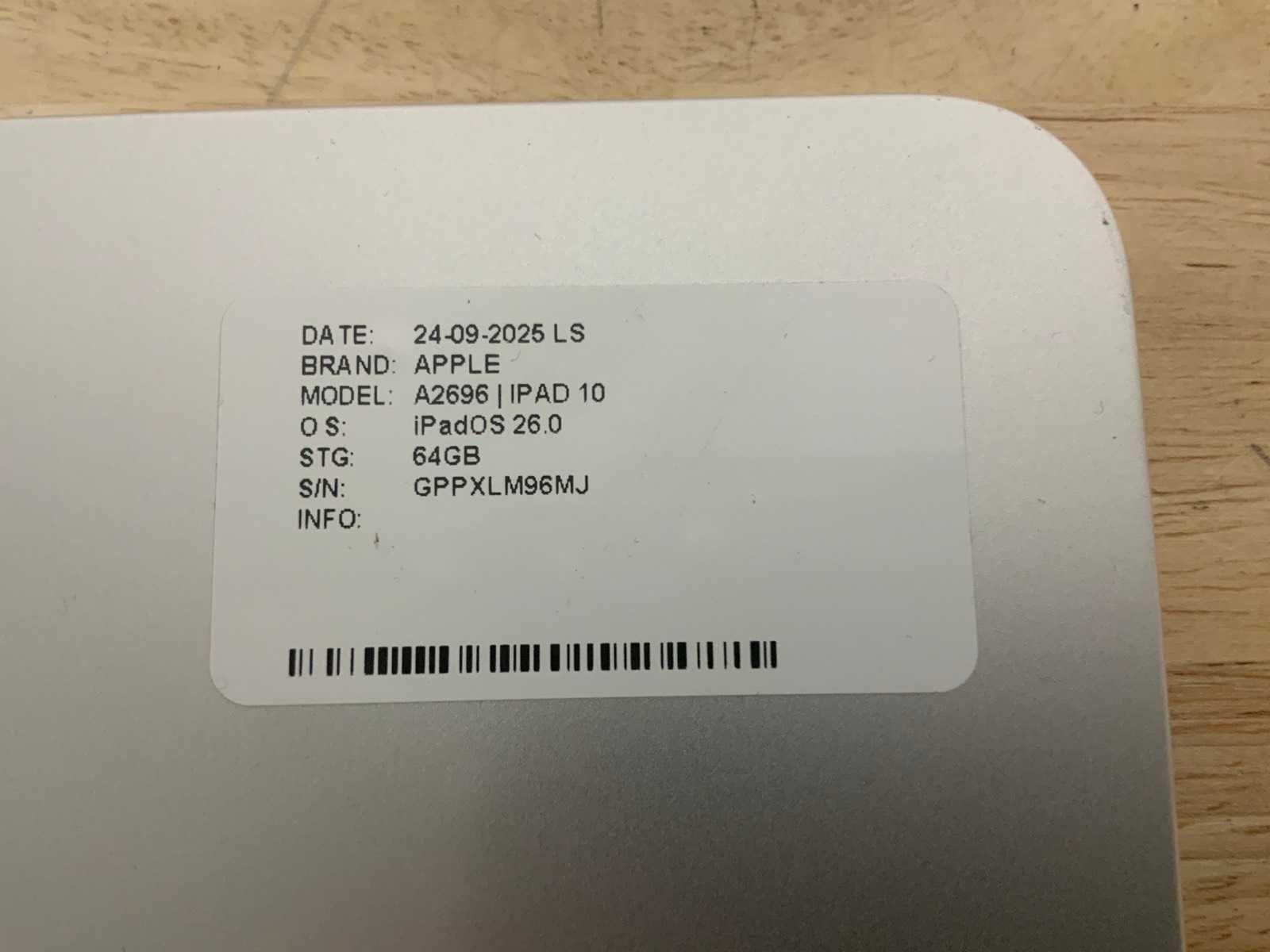 Merk: Apple Type: iPad 10 A2696 Opslagcapaciteit: 64GB SIM: true Frontcamera: true Camera: true Integrated microphone: true Besturingssysteem: IOS 26.0 Wifi: true Bluetooth: true Met voedingskabel: true