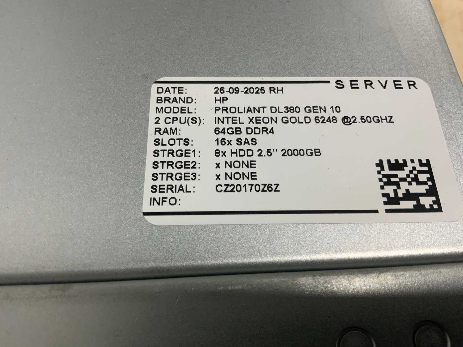 Merk: Hp Type: ProLiant DL380 gen10