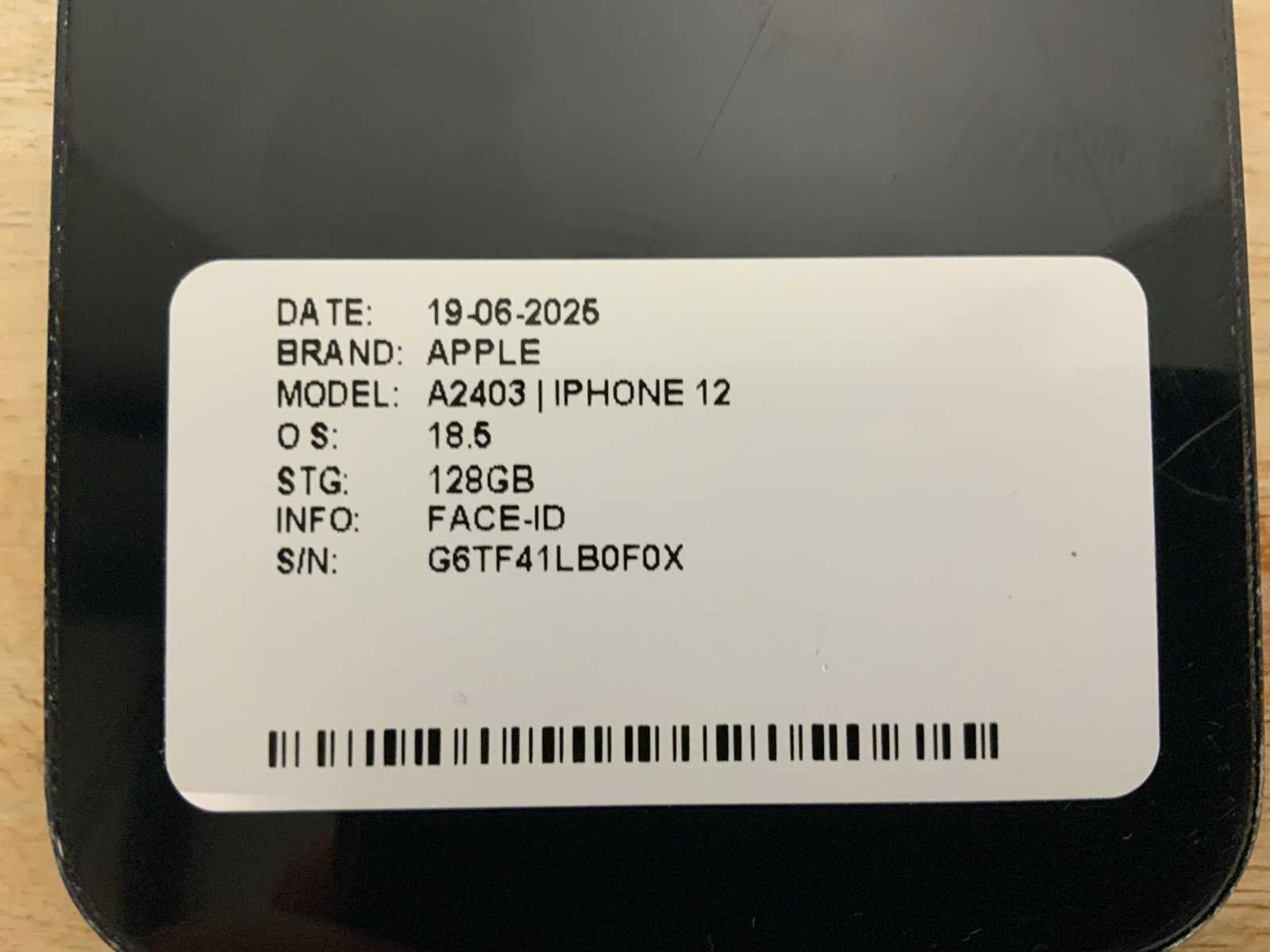 Merk: Apple Model: iPhone 12 | A2403 Wifi: true Bluetooth: true Frontcamera: true Camera: true SIM-card formaat: Nano Opslagcapaciteit: 128GB Besturingssysteem: OS 18.5 Zonder oplader: true Refurbished: true