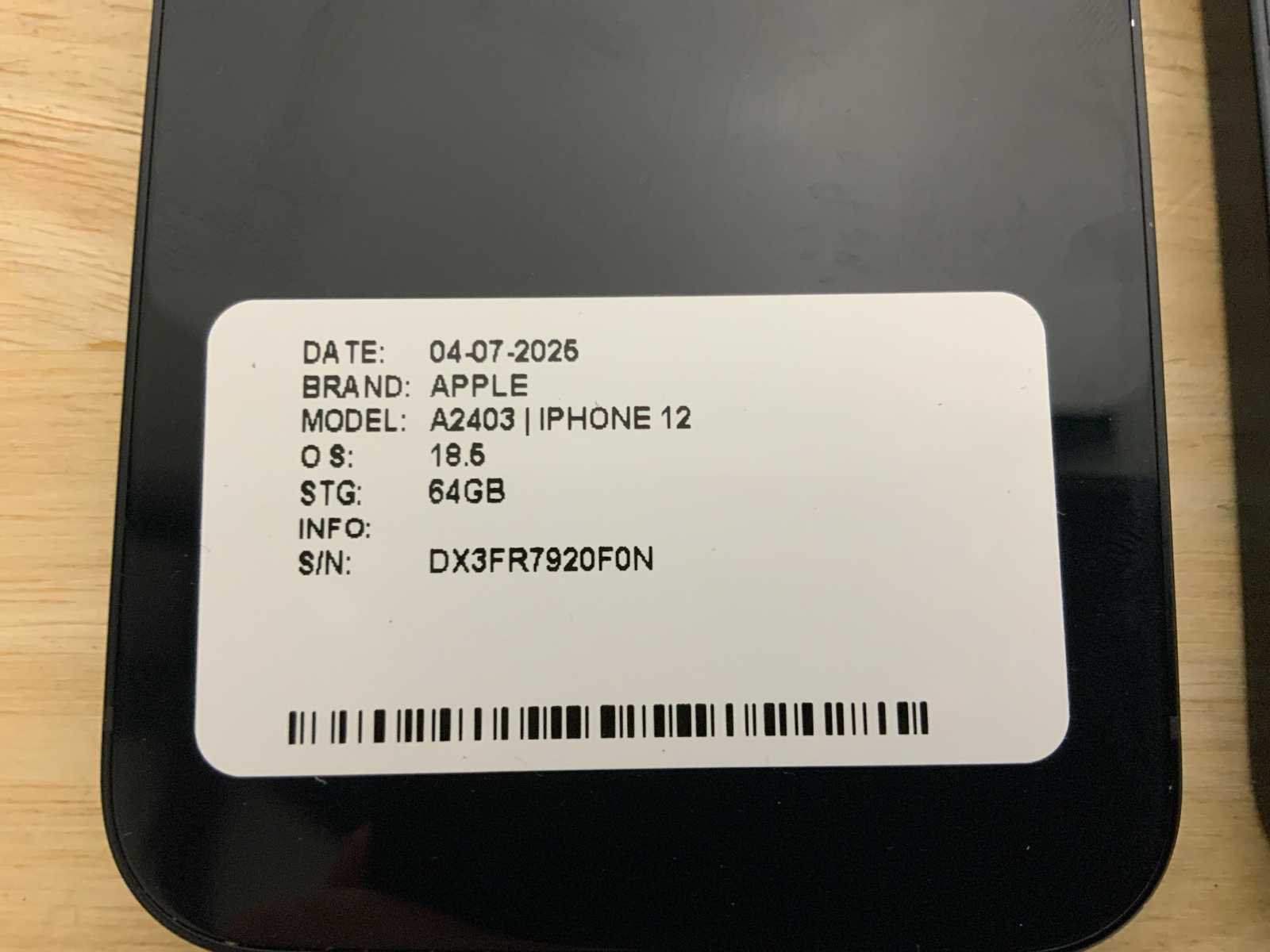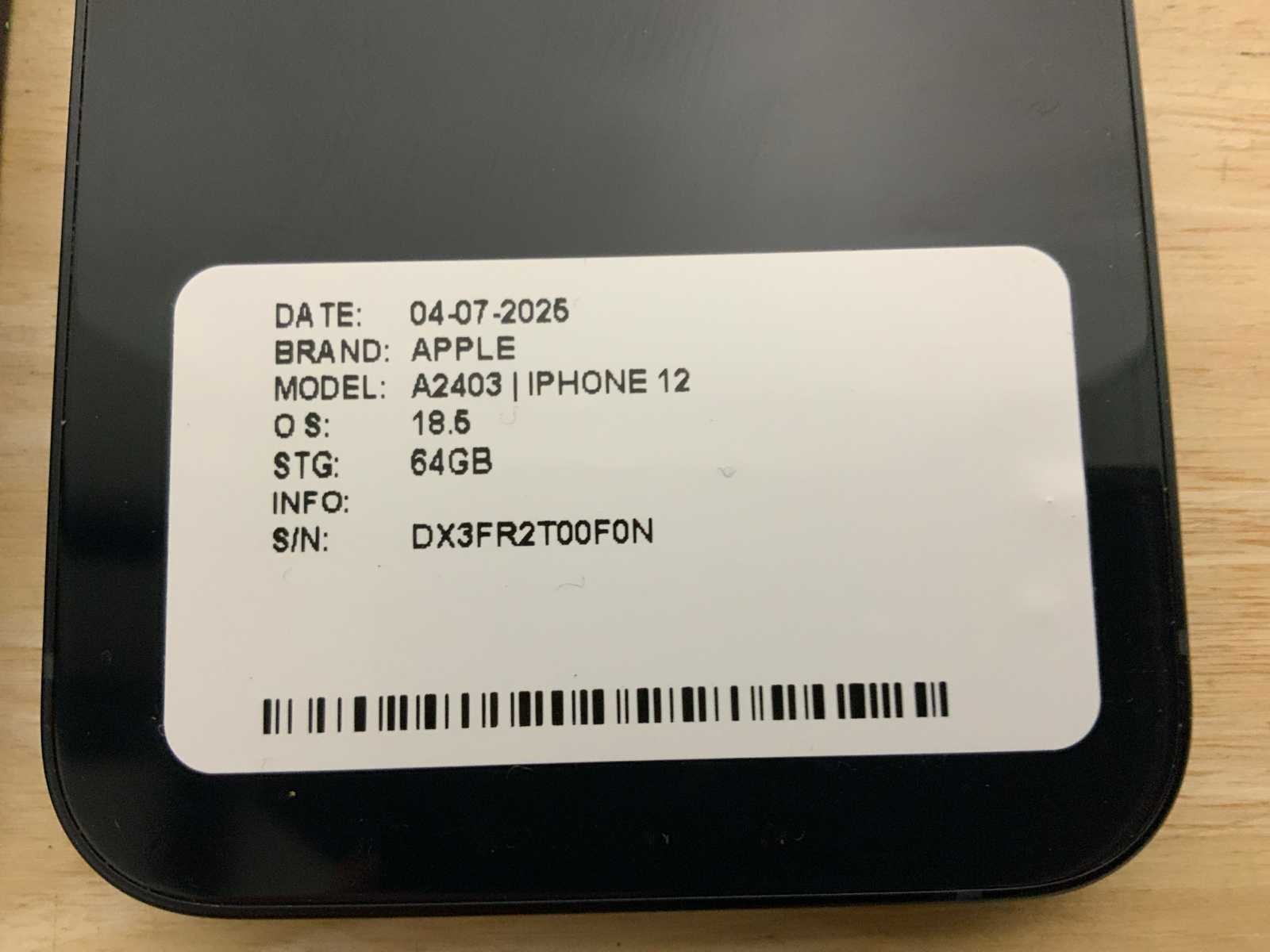 Merk: Apple Model: iPhone 12 | A2403 Wifi: true Bluetooth: true Frontcamera: true Camera: true SIM-card formaat: Nano Opslagcapaciteit: 128GB Besturingssysteem: OS 18.5 Zonder oplader: true Refurbished: true
