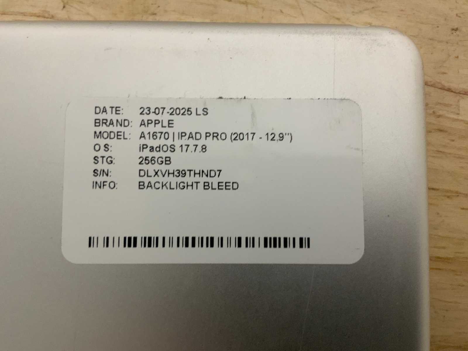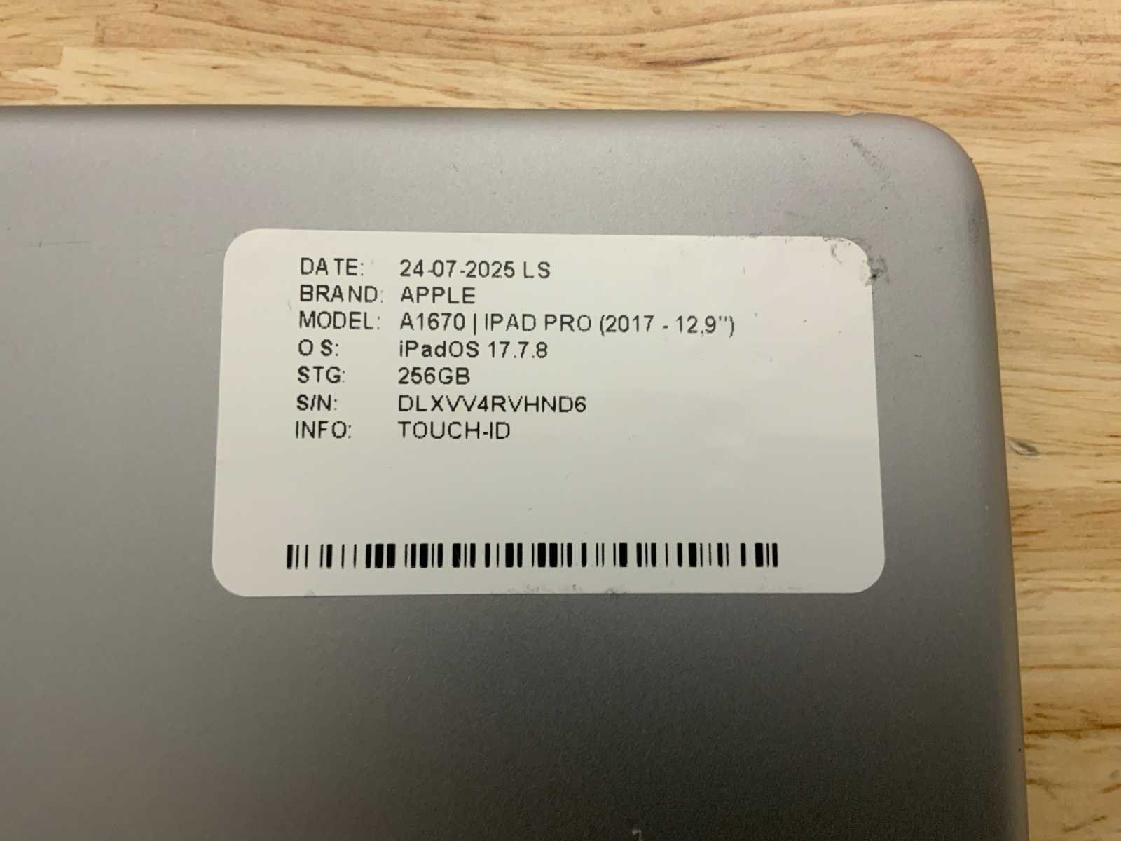Merk: Apple Type: iPad Pro A1670 Opslagcapaciteit: 256GB Frontcamera: true Camera: true Besturingssysteem: Os 17.7.8 Wifi: true Bluetooth: true Touchscreen: true Lengte: 30cm Breedte: 22cm Zonder oplader: true