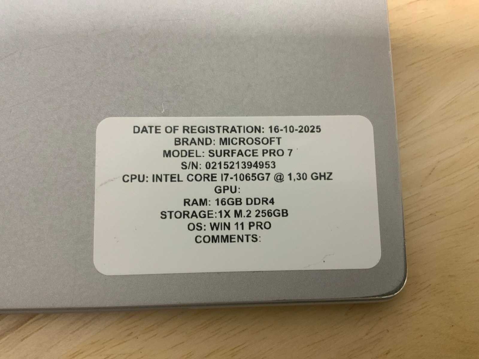 Merk: Microsoft Type: Surface pro 7(i7) Processor type: Intel core i7-1065G7 Processorsnelheid Ghz: 1,30 RAM Geheugen: 16GB RAM Geheugen Type: DDR4 Totale opslagcapaciteit: 256GB Type datadrager: M.2 SSD Aantal datadragers: 1 Besturingssysteem: Windows 11 Pro Licentie: Onboard Zonder adapter: true Touchscreen: true Wifi: true Bluetooth: true USB-Type: USB-A & USB-C USB poorten: 2 Koptelefoon aansluiting: true Webcam: true Toetsenbord: QWERTY