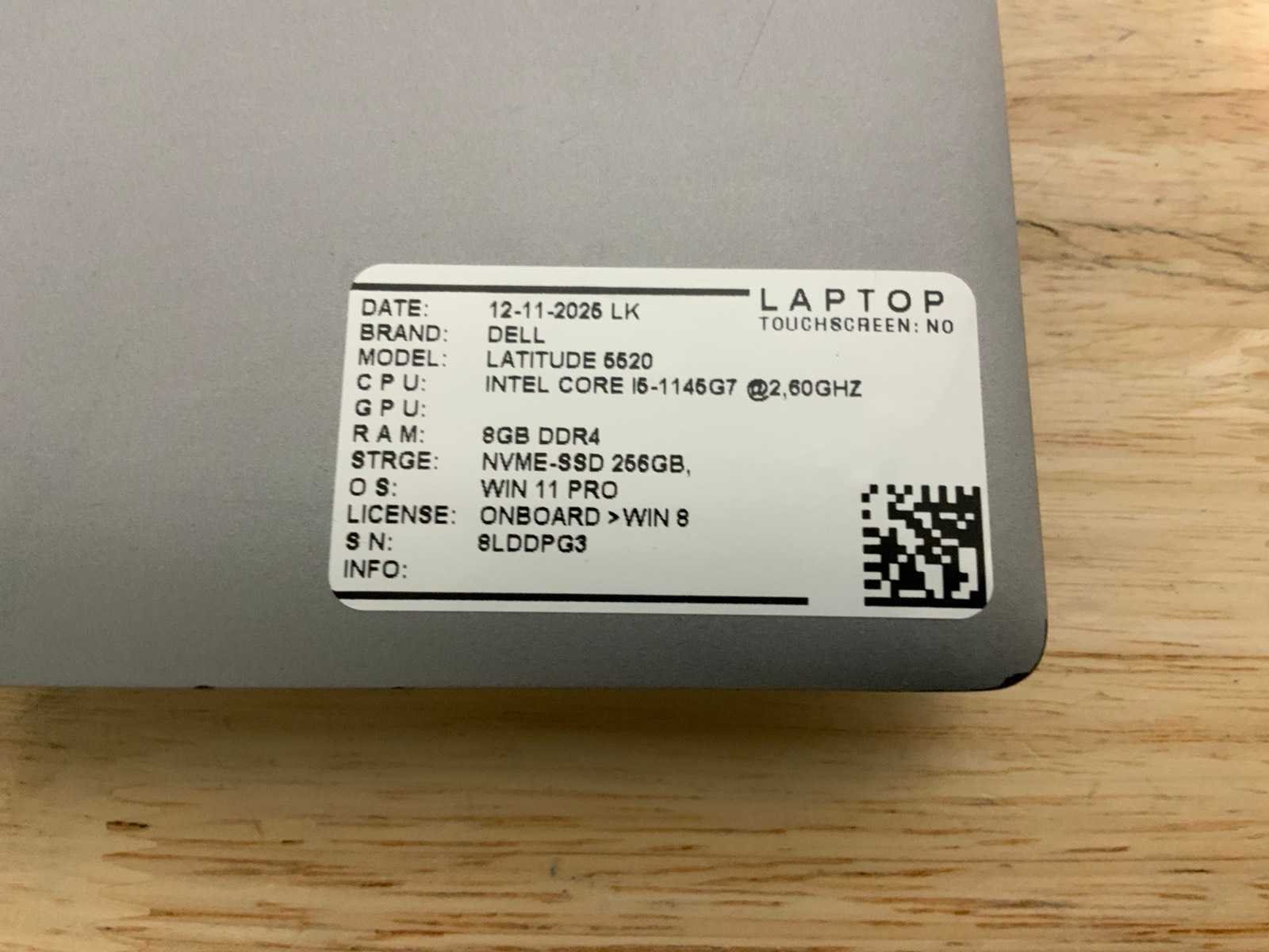 Merk: Dell Type: Latitude 5520 Processor type: Intel core i5-1145G7 Processorsnelheid Ghz: 2,6 RAM Geheugen: 8GB RAM Geheugen Type: DDR4 Totale opslagcapaciteit: 256GB Type datadrager: M.2 SSD Aantal datadragers: 2 Besturingssysteem: Windows 11 Pro Licentie: Onboard Zonder adapter: true Wifi: true Bluetooth: true Ethernet: 1 USB-Type: USB-A & USB-C USB poorten: 4 Card reader: true Koptelefoon aansluiting: true Webcam: true Toetsenbord: QWERTY HDMI: 1