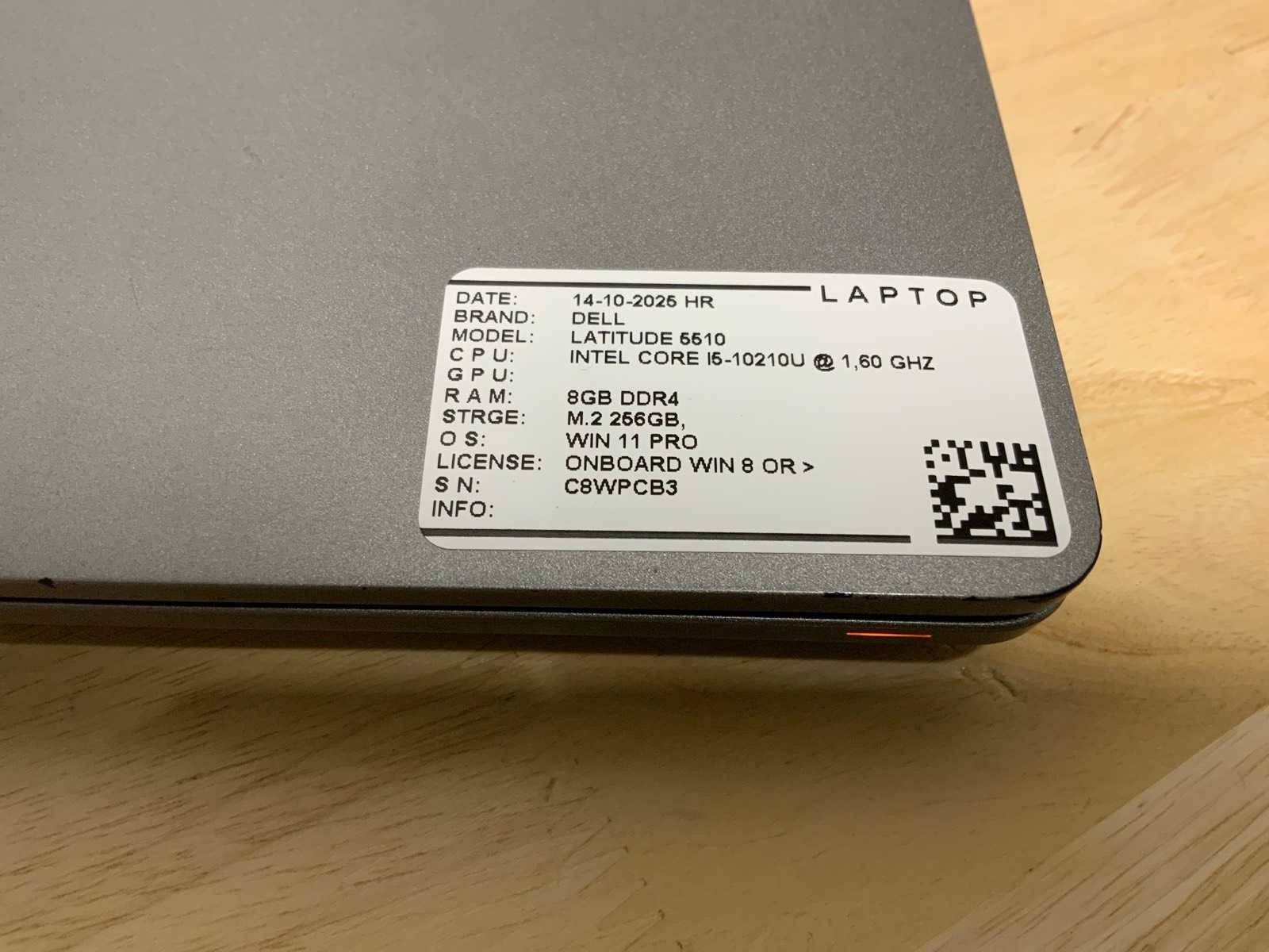 Merk: Dell Type: Latitude 5510 (i5gen10) Processor type: Intel core i5-10210U Processorsnelheid Ghz: 1,6 RAM Geheugen: 8GB RAM Geheugen Type: DDR4 Totale opslagcapaciteit: 256GB Type datadrager: M.2 SSD Aantal datadragers: 1 Besturingssysteem: Windows 11 Pro Licentie: Onboard Beelddiagonaal: 15'' Wifi: true Bluetooth: true Ethernet: 1 USB-Type: USB-A USB poorten: 4 Card reader: true Koptelefoon aansluiting: true Webcam: true HDMI: 1