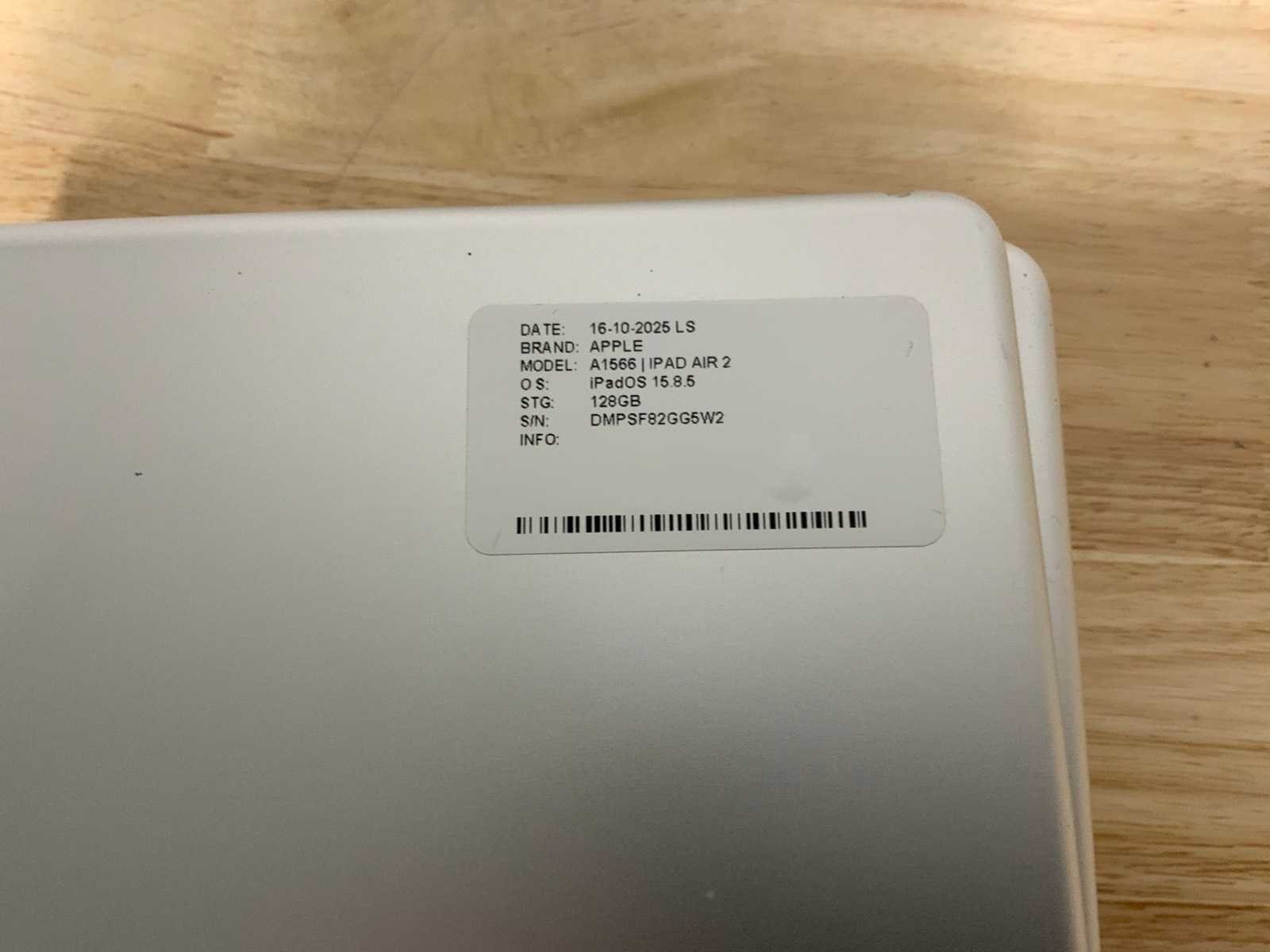 Getest; exlusief oplader; zie fotos voor specs Merk: Apple Type: iPad Air 1 & 2 Frontcamera: true Camera: true Integrated microphone: true Wifi: true Bluetooth: true Touchscreen: true Zonder oplader: true