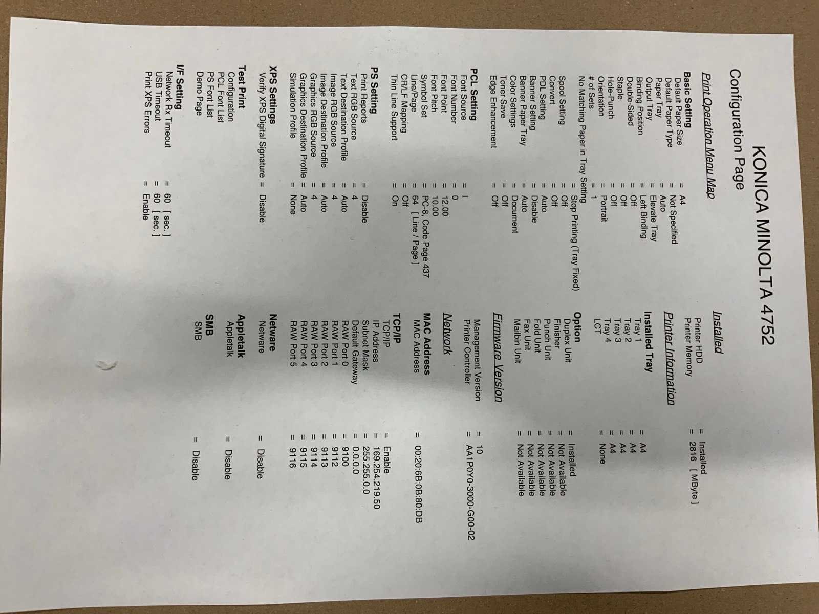 Merk: Konica minolta Model: Bizhub 4752 Type: Laserjet