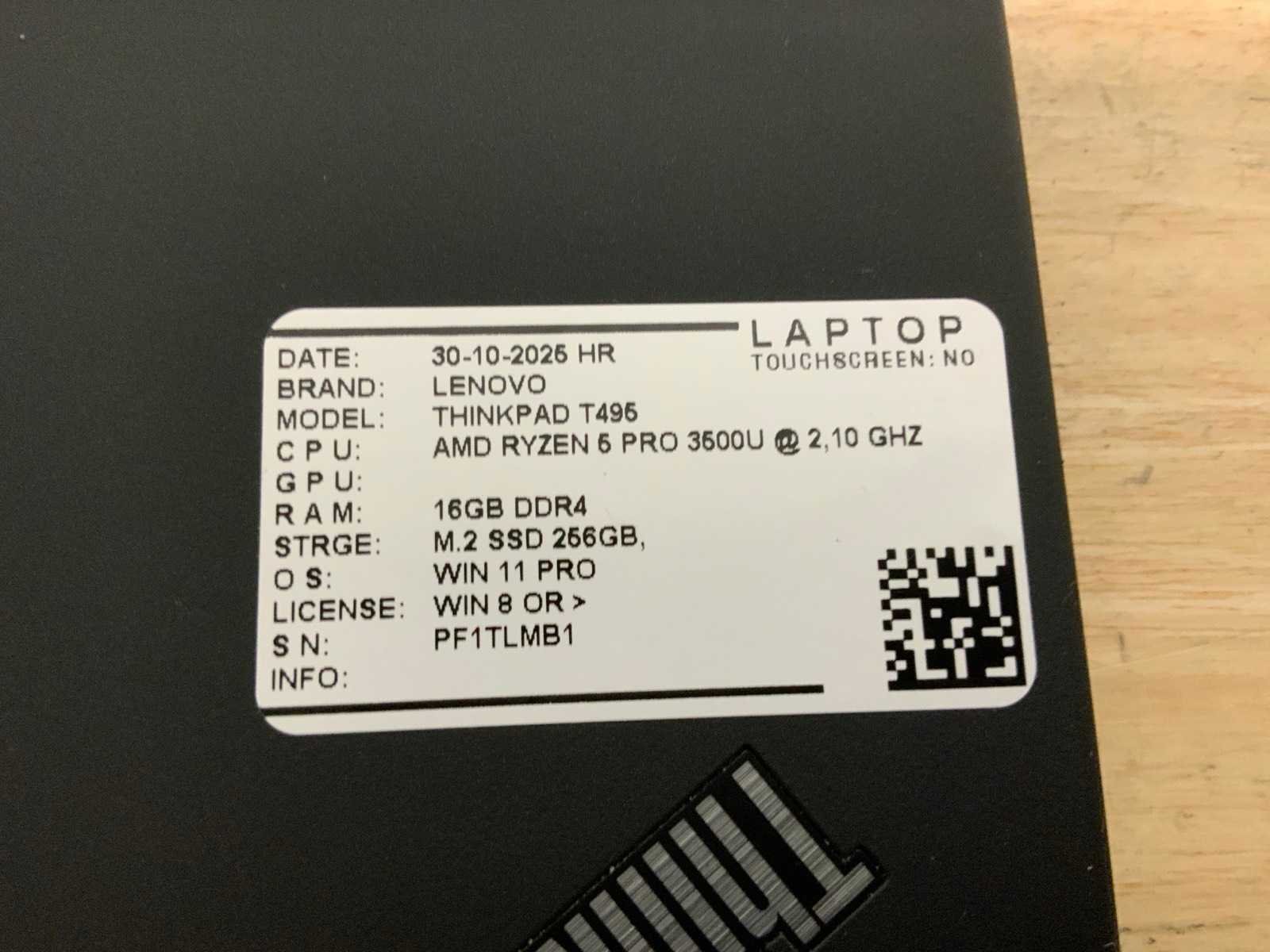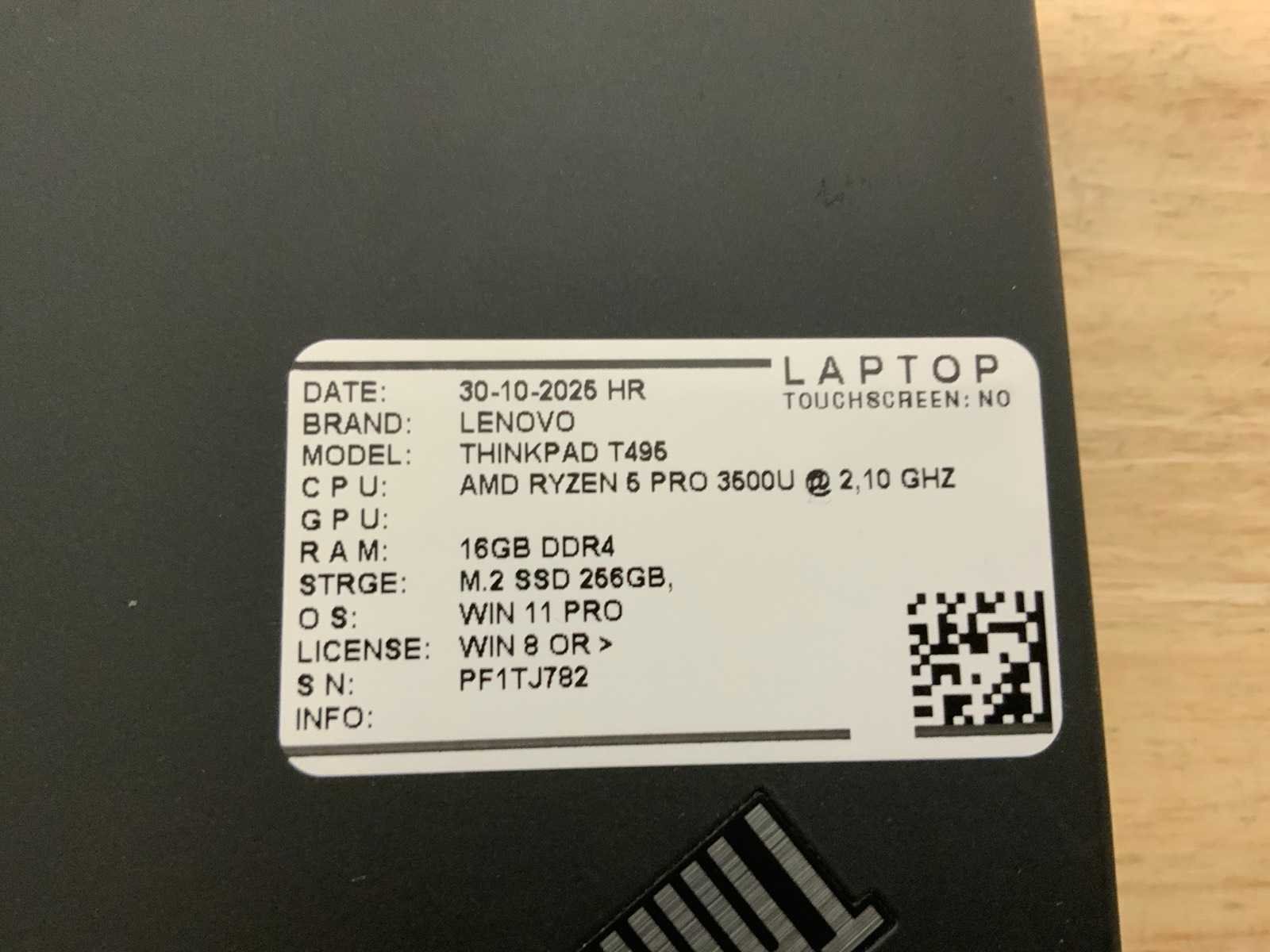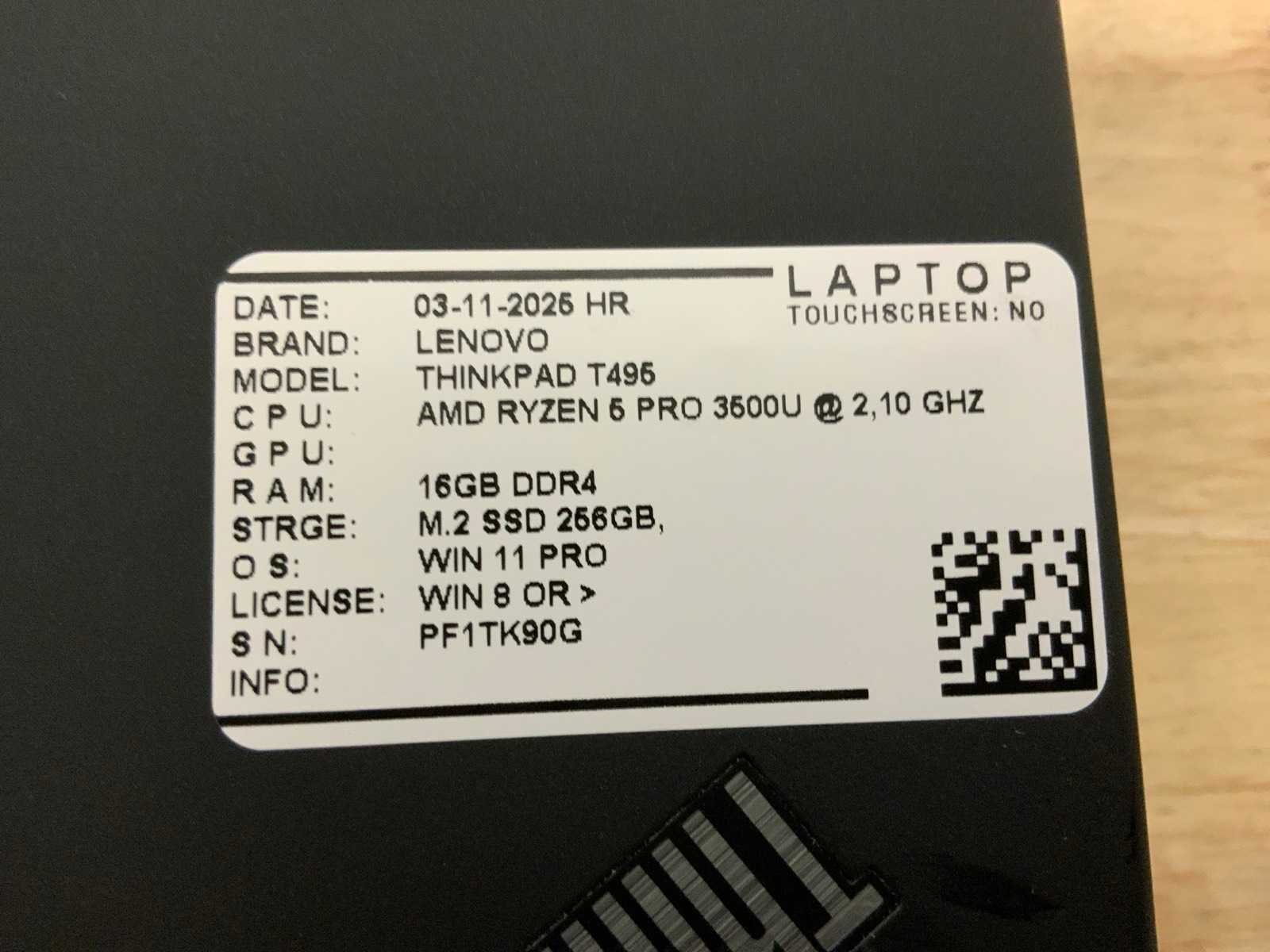 Merk: Lenovo Type: Thinkpad T495 Processor type: Amd ryzen 5 pro 3500U Processorsnelheid Ghz: 2,10 RAM Geheugen: 16GB RAM Geheugen Type: Ddr4 Totale opslagcapaciteit: 256GB Type datadrager: M-sata Besturingssysteem: Windows 11 pro Licentie: Onboard Zonder adapter: true Wifi: true USB-Type: Usb-C/Usb-A USB poorten: 4 Card reader: true Koptelefoon aansluiting: true Webcam: true Toetsenbord: Qwerty HDMI: 1