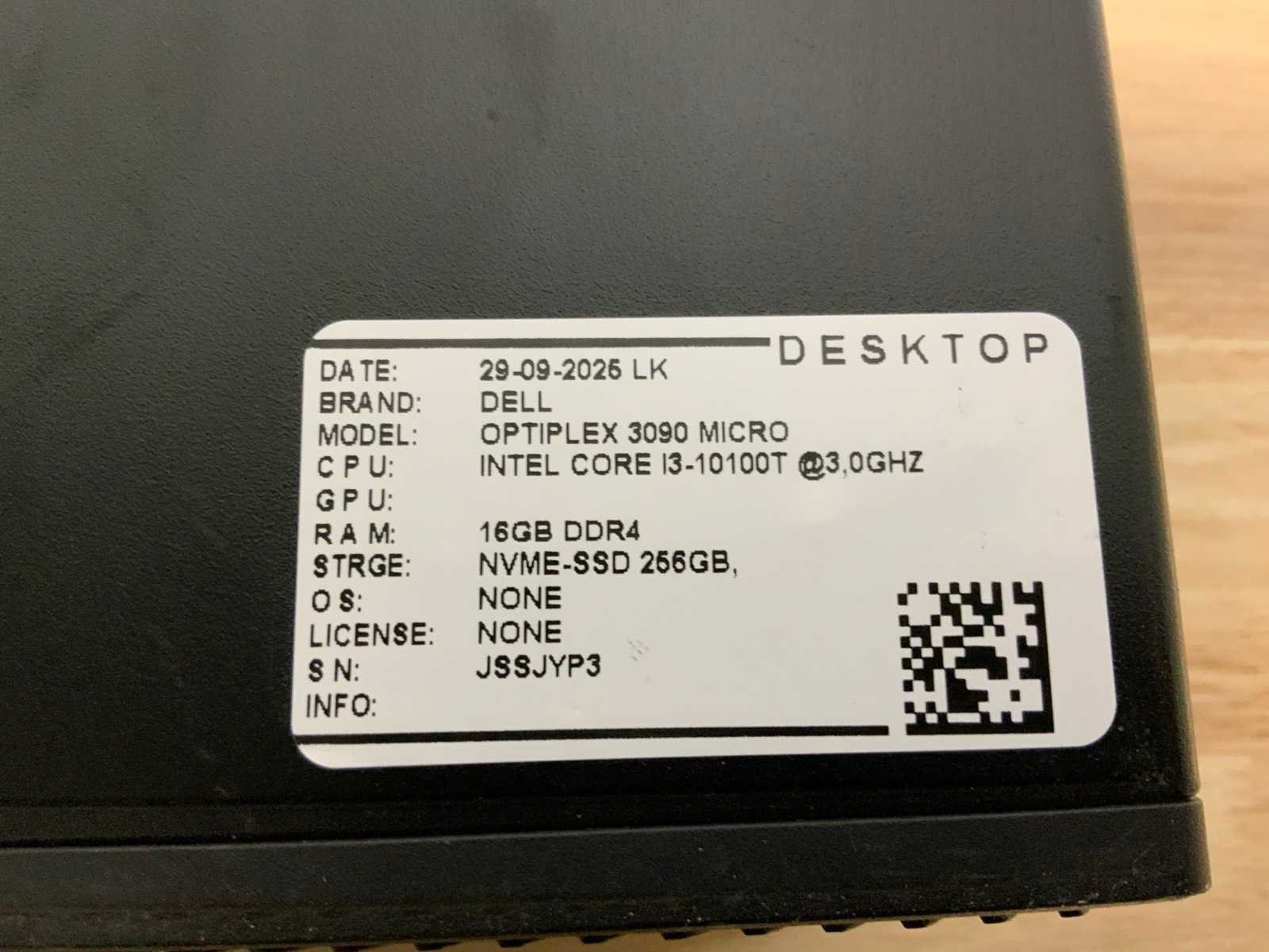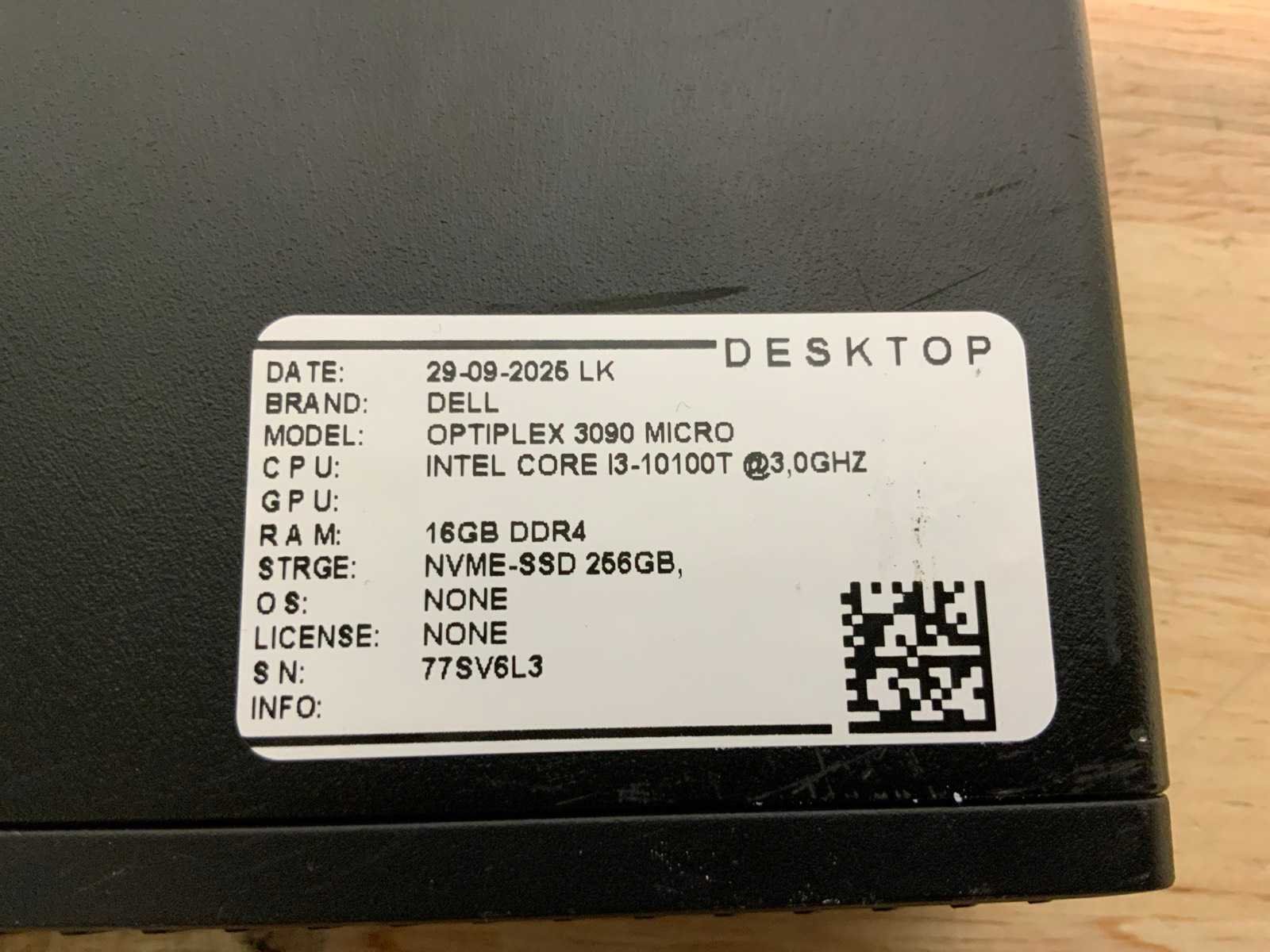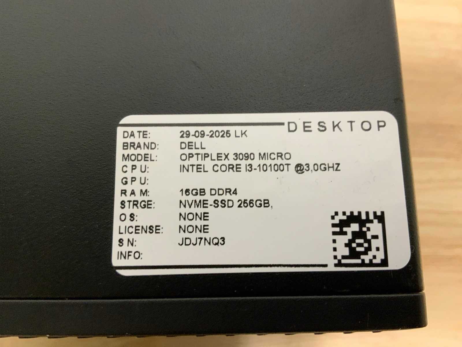 Merk: Dell Type: Optiplex 3090 Micro Processor type: Intel core i3-10100T Processorsnelheid Ghz: 3.00 Besturingssysteem: Nvt Type datadrager: Nvme RAM Geheugen: 16GB RAM Geheugen Type: Ddr4 Opslagcapaciteit: 256GB Displaypoort: 2 VGA: 1 Ethernet: 1 USB poorten: 5 Zonder voedingskabel: true