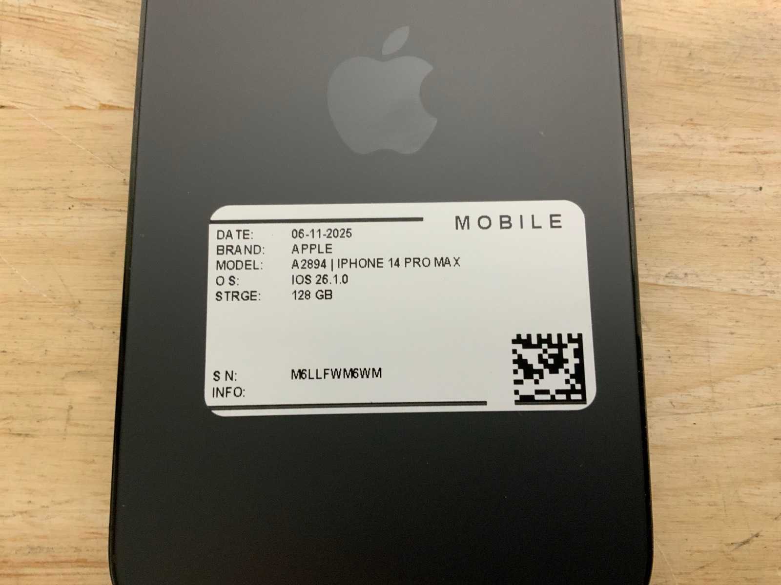 Merk: Apple Model: iPhone 14 pro max A2894 Wifi: true Bluetooth: true Video functie: true Gezichtsherkenning: true Geïntegreerde flits: true Frontcamera: true Camera: true Touchscreen: true Simlock vrij: true Opslagcapaciteit: 128GB Besturingssysteem: IOS 26.1.0 Zonder oplader: true