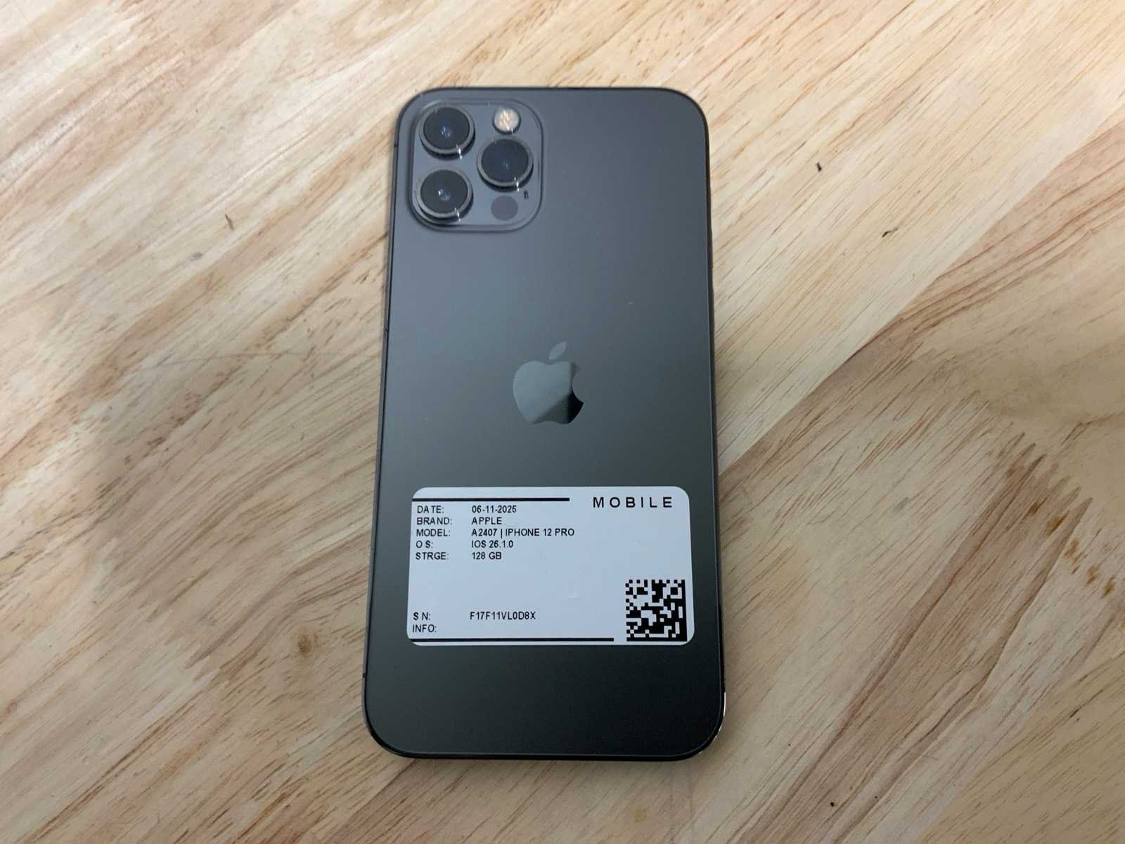 Merk: Apple Model: iPhone 12 pro A2407 Wifi: true Bluetooth: true Video functie: true Gezichtsherkenning: true Geïntegreerde flits: true Frontcamera: true Camera: true Touchscreen: true Simlock vrij: true Opslagcapaciteit: 128GB Besturingssysteem: IOS 26.1.0 Zonder oplader: true