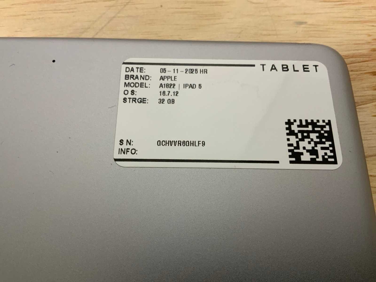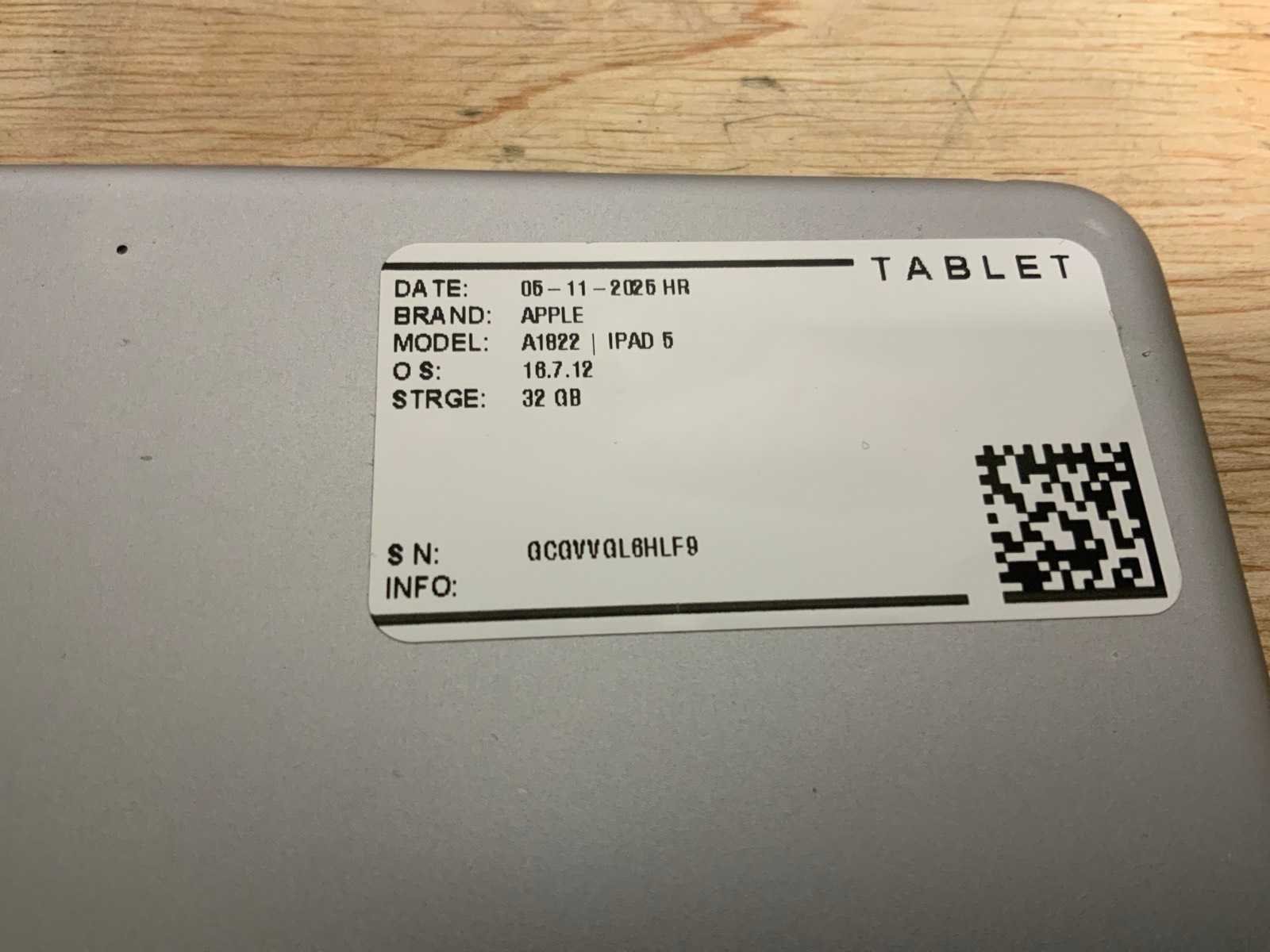 Merk: Apple Type: iPad 5 A1822 Frontcamera: true Camera: true Besturingssysteem: OS 16.7.12 Wifi: true Bluetooth: true Touchscreen: true Zonder oplader: true Refurbished: true