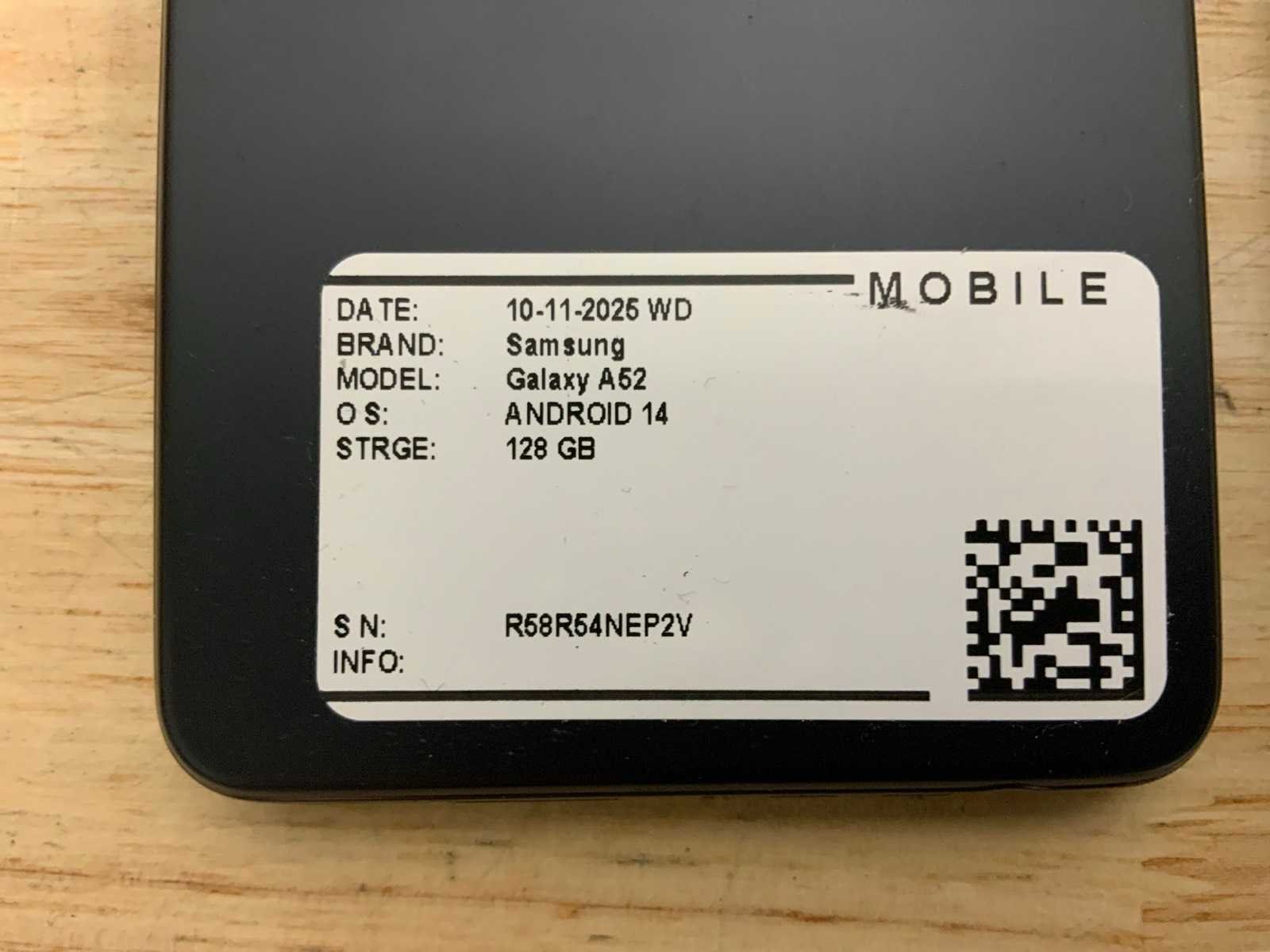 Merk: Samsung Type: Galaxy A52 Wifi: true Bluetooth: true Dual SIM: true Frontcamera: true Camera: true Touchscreen: true Simlock vrij: true Opslagcapaciteit: 128GB Besturingssysteem: Android 14 Zonder oplader: true