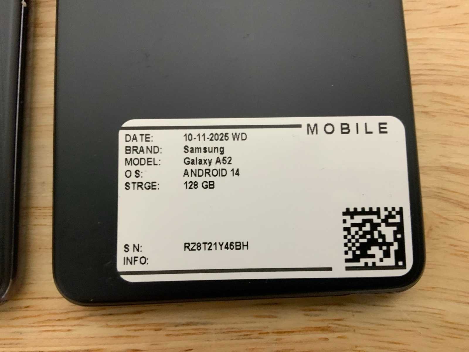 Merk: Samsung Type: Galaxy A52 Wifi: true Bluetooth: true Dual SIM: true Frontcamera: true Camera: true Touchscreen: true Simlock vrij: true Opslagcapaciteit: 128GB Besturingssysteem: Android 14 Zonder oplader: true