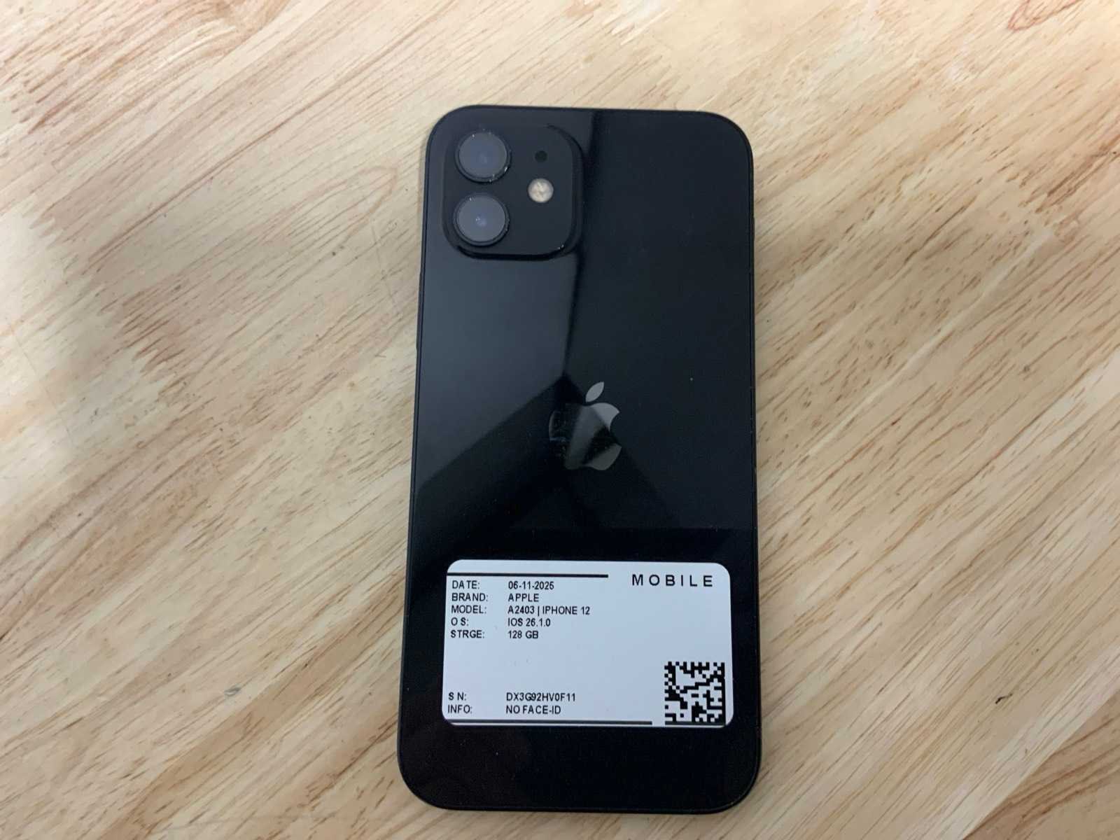 Merk: Apple Model: iPhone 12 | A2403 Wifi: true Bluetooth: true Frontcamera: true Camera: true SIM-card formaat: Nano Opslagcapaciteit: 128GB Besturingssysteem: OS 26.1.10 Zonder oplader: true Refurbished: true
