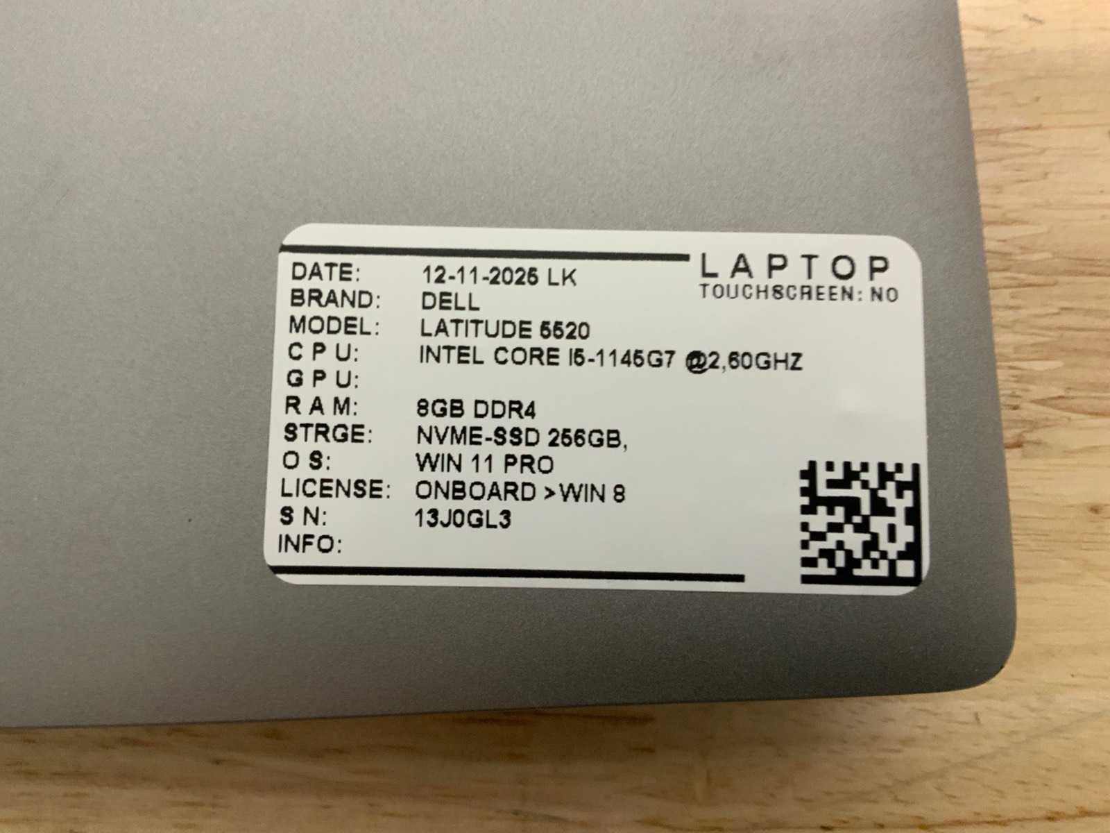 Merk: Dell Type: Latitude 5520 Processor type: Intel core i5-1145G7 Processorsnelheid Ghz: 2,6 RAM Geheugen: 8GB RAM Geheugen Type: DDR4 Totale opslagcapaciteit: 256GB Type datadrager: M.2 SSD Aantal datadragers: 2 Besturingssysteem: Windows 11 Pro Licentie: Onboard Zonder adapter: true Wifi: true Bluetooth: true Ethernet: 1 USB-Type: USB-A & USB-C USB poorten: 4 Card reader: true Koptelefoon aansluiting: true Webcam: true Toetsenbord: QWERTY HDMI: 1