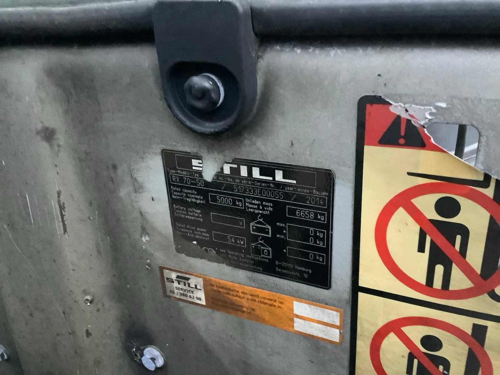 Op werking getest start niet Merk: Still Type: rx70-50 Bouwjaar: 2014 Serienummer: 57333e0005 Brandstof: Diesel Mast: Duplex Soort band: Volrubber banden Aantal wielen: 4 Duplex mast: true Eigen gewicht: 6658kg Hefvermogen: 5000kg Hefhoogte: 4880mm Vol rubber banden: true Minimale doorrijhoogte: 3200mm Totale afmeting L: 4500mm Totale afmeting Breedte: 1800mm Totale afmeting Hoogte: 3200mm