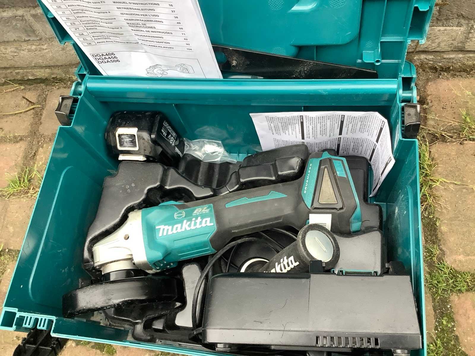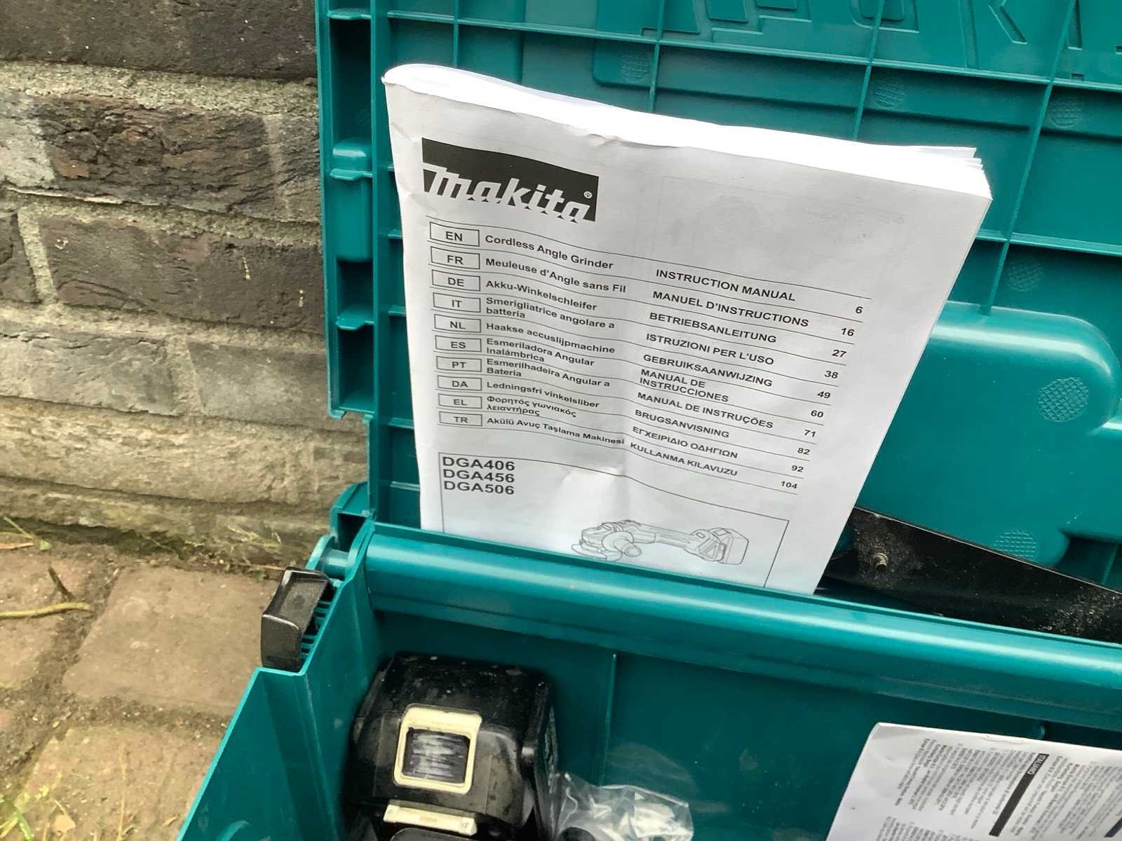 Op werking getest Merk: Makita Type: dga506 Bouwjaar: 2019 Accu lader: true Met koffer: true Accuspanning: 18V Aantal accu's: 1